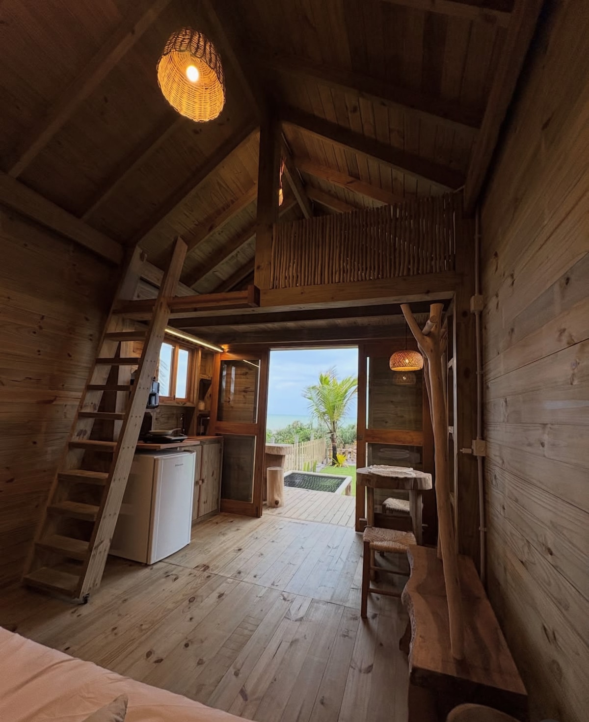 Viver dias que parecem tirados de um retiro em Bali? Localizadas na mais bela faixa de coqueiros de Caraiva, e de frente para as piscinas naturais, trazem toda a essência da arquitetura balinesa. ConstruÃdas com madeira de reflorestamento e pensadas de forma totalmente sustentável, as cabanas oferecem: âš Pé na areia e mar no quintal âš Mezanino âš Cozinha equipada âš Rede externa suspensa para relaxar ao som do oceano âš Quintal amplo, perfeito para yoga, meditação e esportes à beira-mar
