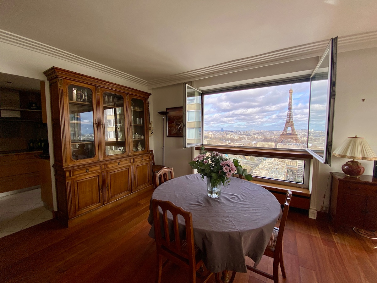 Spacious studio on a high floor with a private balcony offering a breathtaking view of the Eiffel Tower. Recently refurbished for a fresh, modern feel, it features a comfortable queen-size bed, a relaxing sofa, a fully equipped kitchen, and a sleek Italian shower. Located in a safe, vibrant neighborhood with plenty of restaurants, cafes, and shops nearby, it's perfect for exploring Paris. Enjoy the iconic view and unwind in style, just steps from metro access and top attractions!