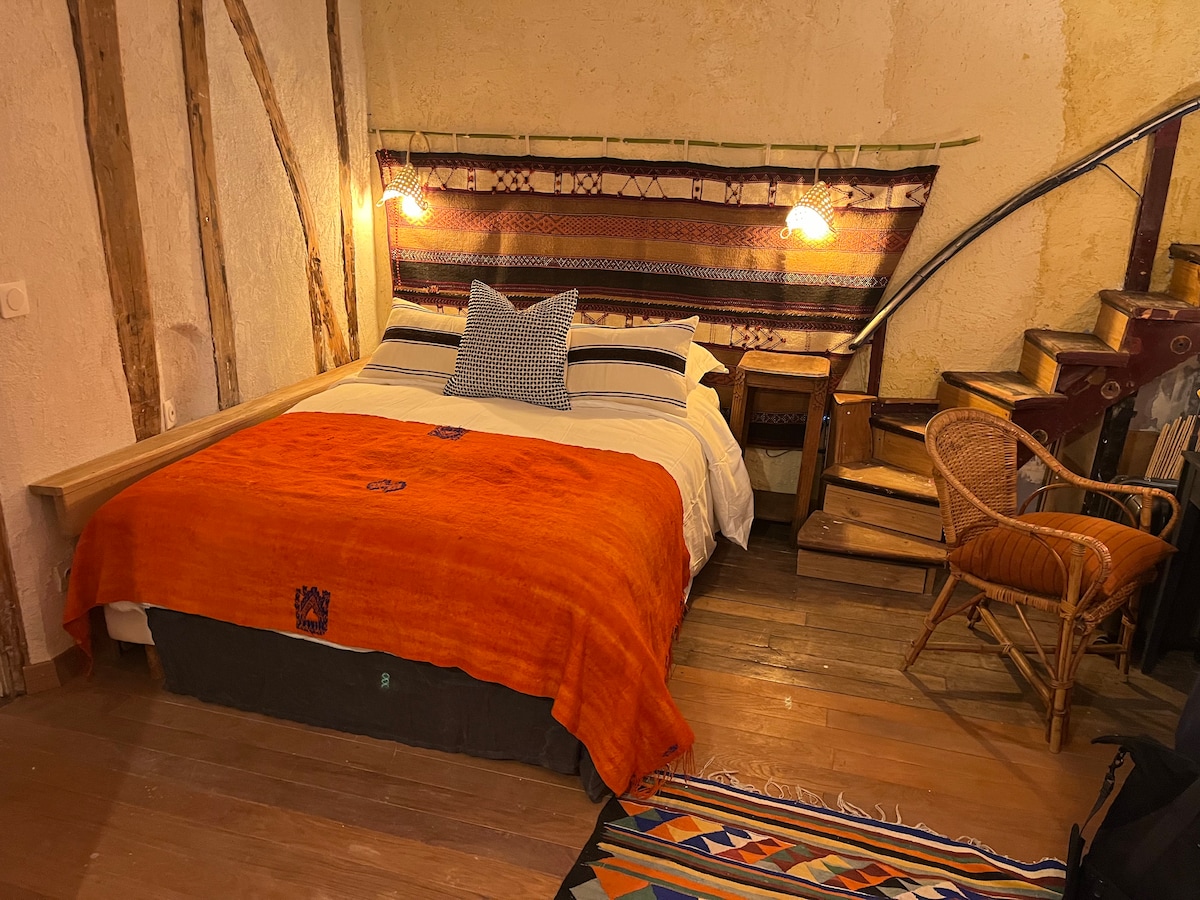 Peaceful and private hideout at the foothill of Montmartre. This unique appartement has been home and inspiration for world famous painters, poets and film makers. Equipped with: cozy Queen-size bed, with all natural fabrics, kitchen corner, a bathroom and WC. On the small balcony you can eat or read outside and look at Paris' roofs. The mural painting is from one of Latin America’s greatest masters, Guillermo Olguin. The gifted interior designer is also your co host, Victoria Senoret.