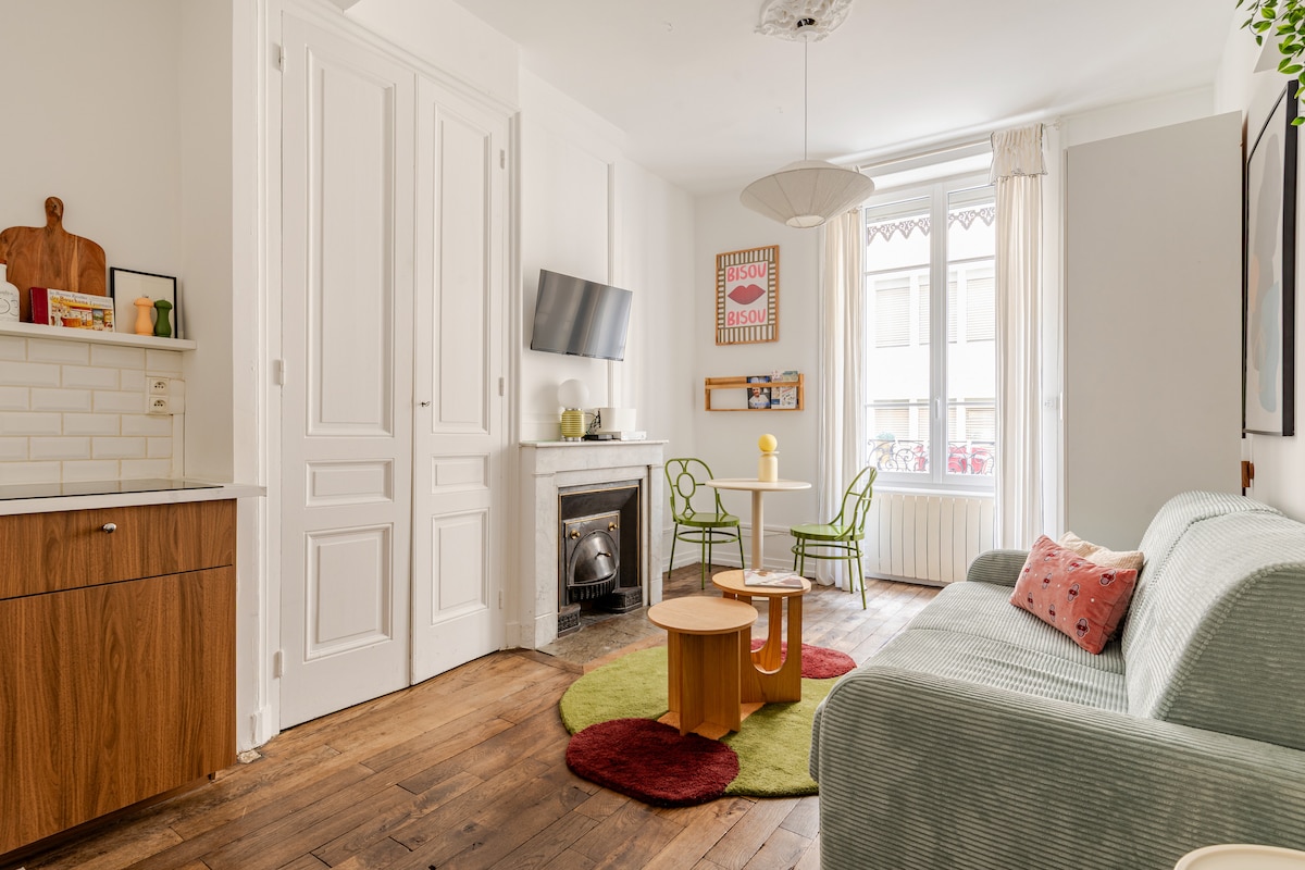 最上階にあるエレベーター付きの90平方メートルの高級フランススタイルのアパートで、最大8名様まで宿泊可能で、バルコニー付きです。 広々として静かで、明るくスタイリッシュな典型的なリヨンスタイルのお部屋です。木の床、高い天井、暖炉、開放的なリビングスペースのモダンさ、最新の設備、トレンディな装飾が融合し、とてもフレンドリーで居心地が良い場所になっています。 リヨンの中心部にあり、すべての公共交通機関やアメニティのすぐ隣にあり、ベルクール広場と旧市街から5分です!