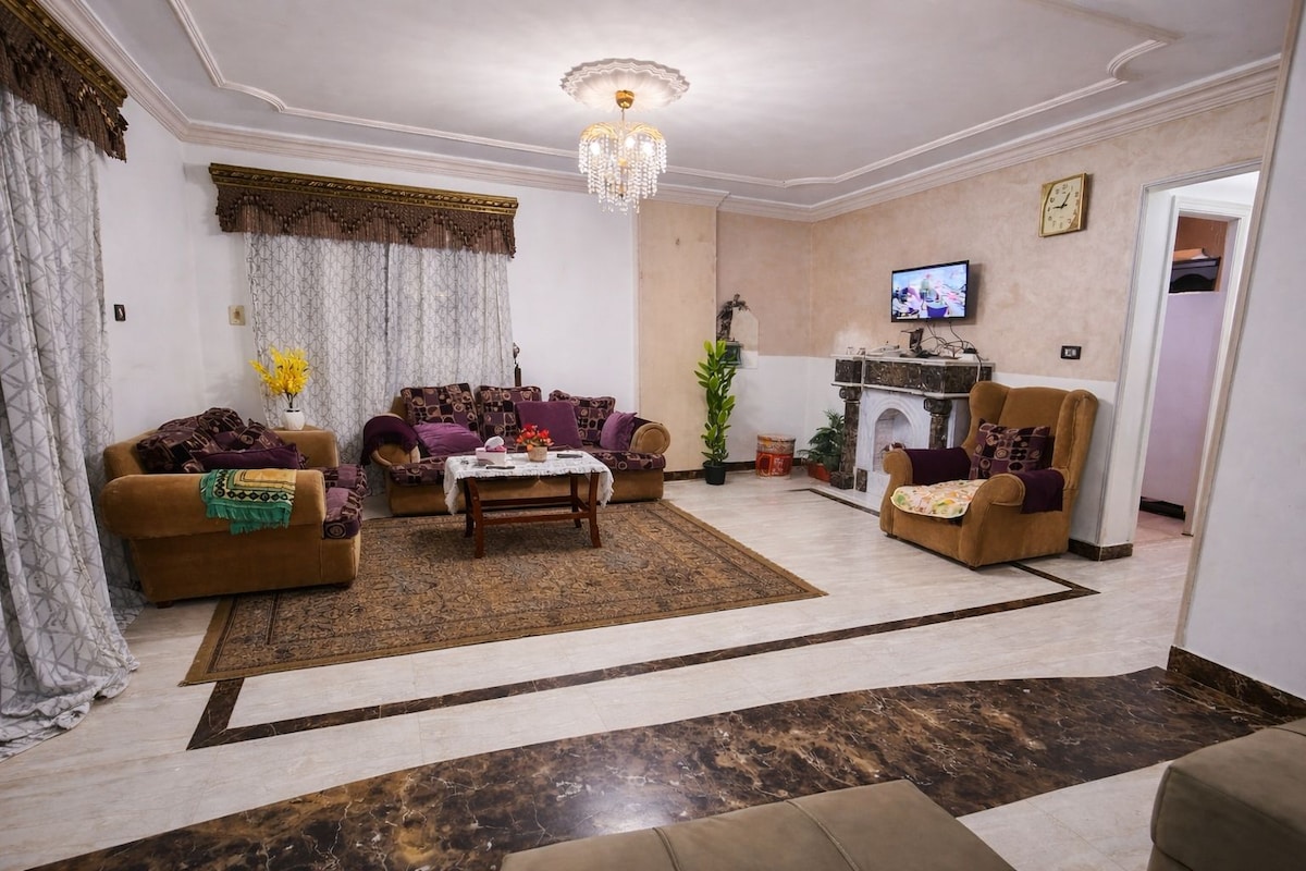 シューティングクラブとモール・オブ・アラビアの後ろにある中心部に位置する快適なアパートで、シェイク・ザイード・シティに非常に近いです。 モダンな家具、すべての電化製品、キッチン、エアコン、コーヒーコーナー。 滞在中は清潔なアパートと清潔なシーツを確保しています。 注意事項: - 各ゲストに身分証明書の写しが必要です。 - カップルの場合は結婚証明書が必要です。