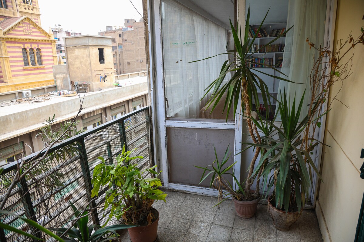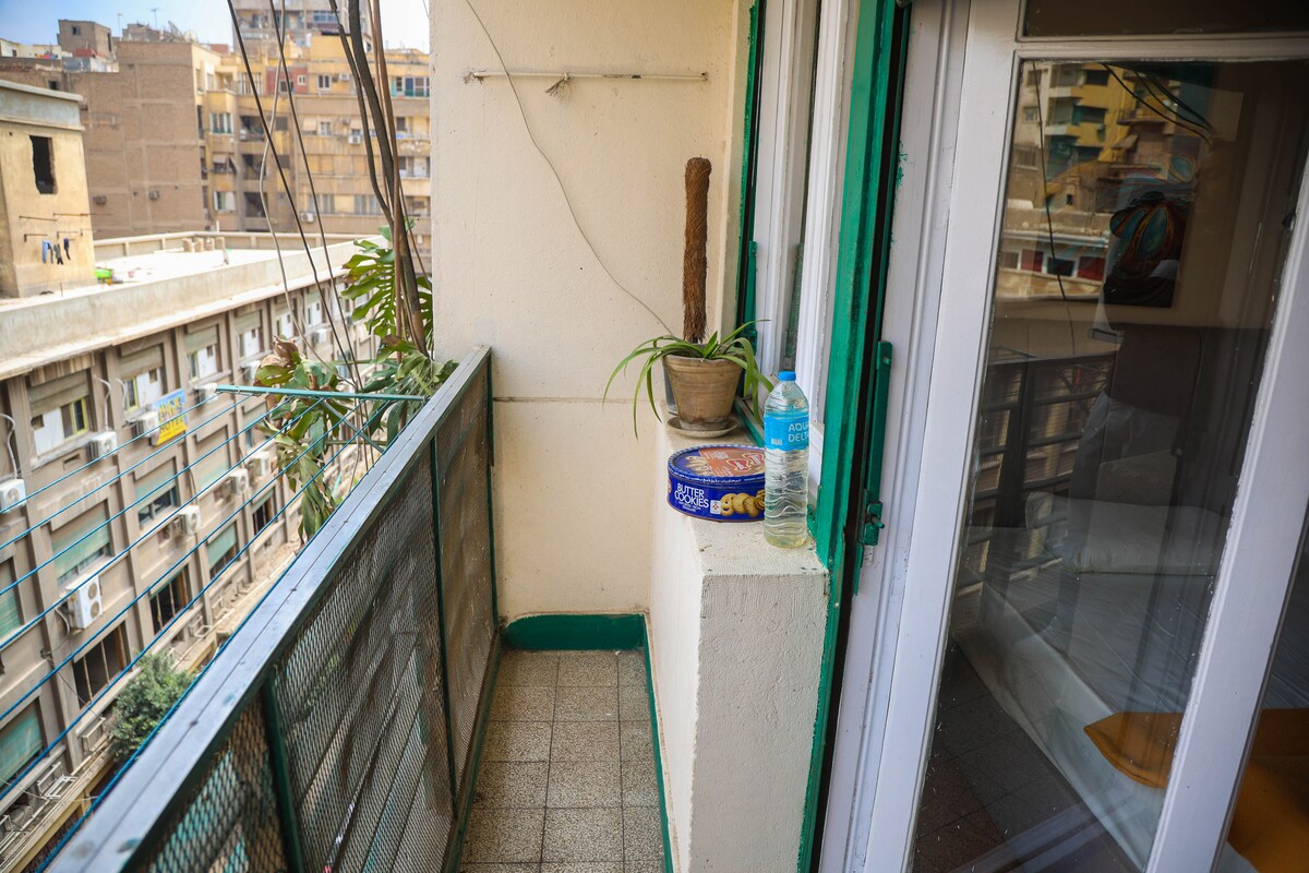 快適なベッド2台、豪華なソファ、魅力的な椅子2脚を備えた広々としたお部屋で、快適さと優雅さを体験してください。 エアコン、高速Wi-Fi、薄型テレビ、扇風機をご利用いただけます。 専用バルコニーからは、カイロのダウンタウンの活気あふれる光景と音が一望できます。 貴重な家具が備わったヴィンテージのダイニングルームとリビングスペースをお楽しみください。また、設備の整ったキッチンで料理を作ることもできます。カイロを探索するのにぴったりの拠点が待っています。今すぐ予約して忘れられない思い出を作りましょう!