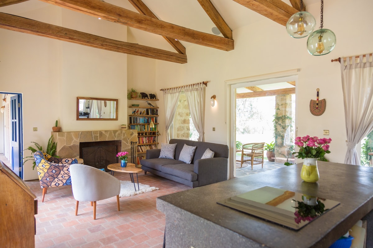 ナイバシャのロンゴノット火山の麓にある、とてもユニークで「風変わり」でモダンな(環境に優しい)ブッシュホームです。この家はマバティ(金属板)で覆われており、ケニアではユニークなデザインです。この家には小さなプランジプールがあり、日中は太陽熱で温められ、夜は薪で温めることができます。パートナーとのロマンチックな週末や、静かな週末を1人でリラックスしたい場合は、ここがおすすめです!この家は完全に「オフグリッド」で、電力は ☀️