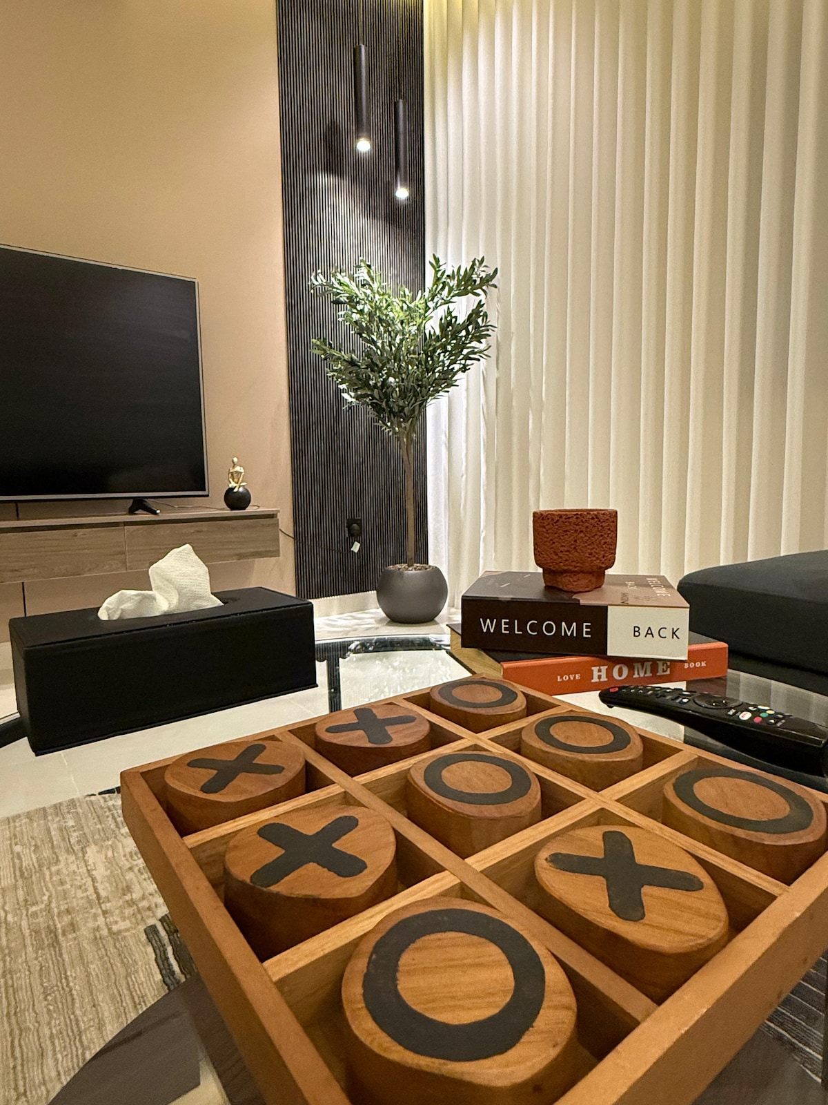 غرفة وصالة مودرن | شاشة 70 بوصة ، دخول ذاتي