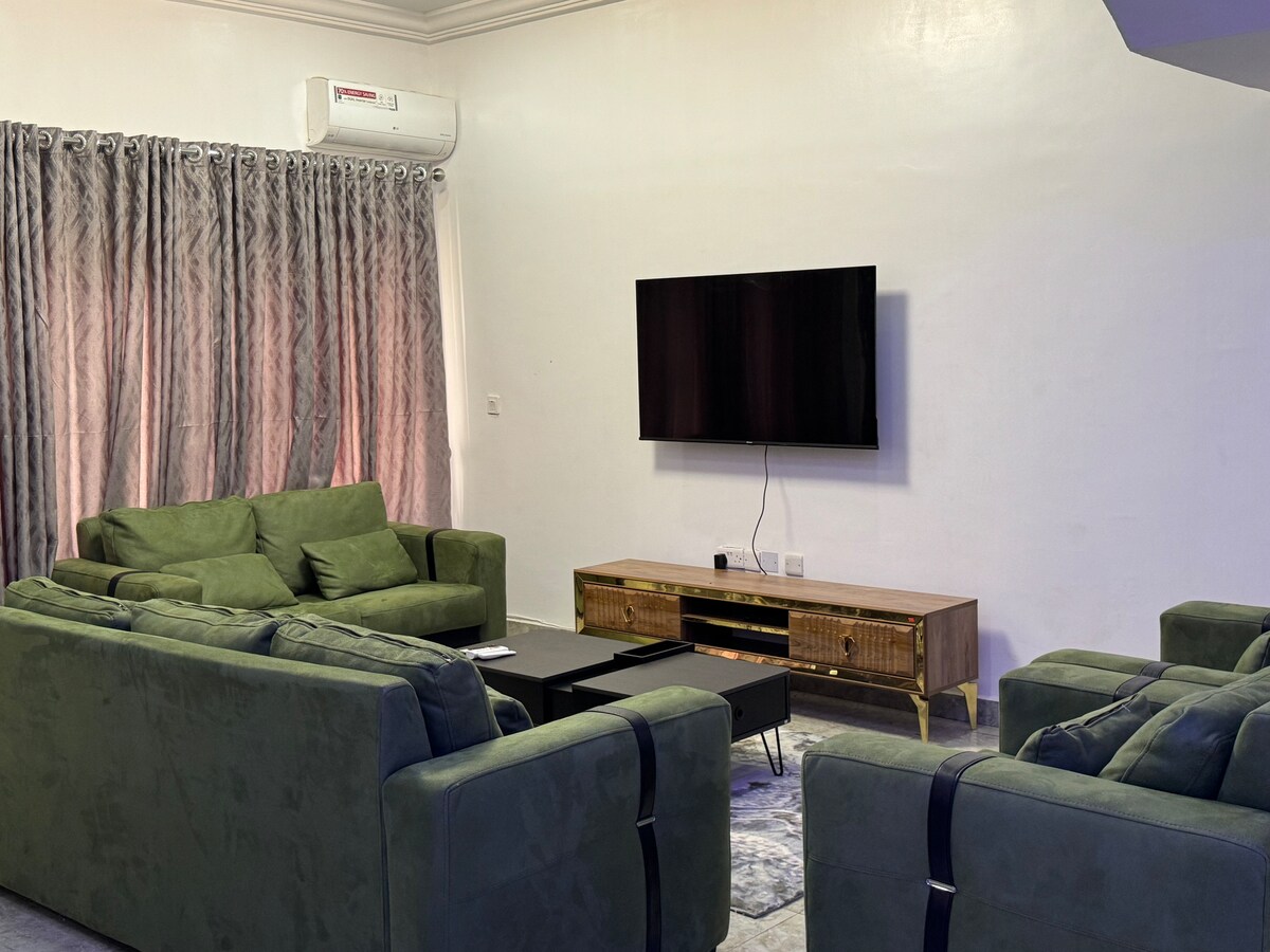 アブジャのカルサナにあるステップ1エステートのホール7にある広々とした2ベッドルームのデュプレックスへようこそ! PlayStation 5、スマートテレビ、DSTV、高速ファイバーネットワークでエンターテイメントをお楽しみください。 信頼できる電気(NEPA)とバックアップインバーターで安心してください。 みなさまのセキュリティを最優先に考え、24時間365日対応の担当者がいます。 設備の整ったキッチンでお料理いただけます。 最低2名様以上でのご予約が必要です。1名様のご予約はできませんのでご注意ください。 あなたのご滞在を楽しみにしております!