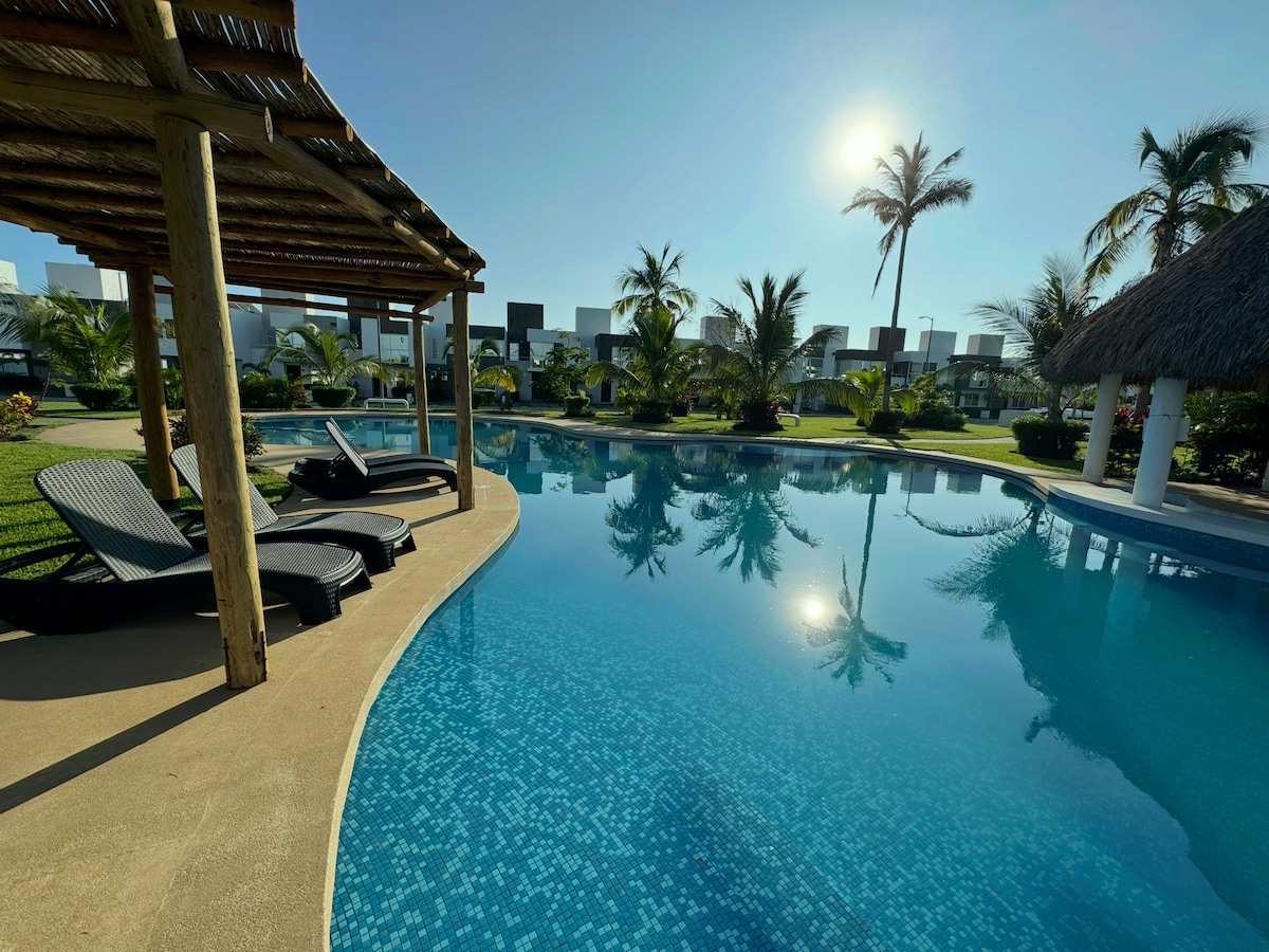 Villa Caleta is part of the exclusive Villas San Vicente complex a 25,000 m² paradise located right in front of the beautiful San Vicente Beach. Enjoy direct beach access, a private pool, and a shared pool surrounded by lush gardens, perfect for kids to play and have fun. The villa features a fully equipped kitchen, dining area, and living room designed for relaxing and sharing unforgettable moments. Just 5 minutes from Acapulco International Airport and 1 minute from La Isla Shopping Village.