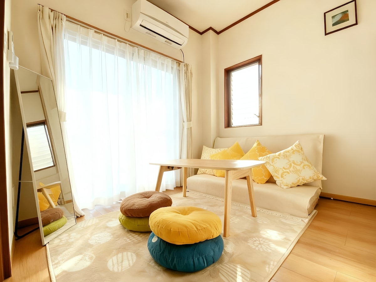 東京都足立区梅田に位置する当施設は、梅島駅から徒歩1分の好立地にある一棟貸し宿泊施設です。 主要駅へのアクセスが非常に優れており、上野駅まで約15分、秋葉原駅まで約20分、銀座駅や六本木駅まで乗り換えなしで移動可能です。 東京観光の拠点として最適です。 室内は白を基調とし、温かみのある木目(茶色)や淡いベージュ系のファブリック(ソファ、ベッドカバー、カーテンなど)で統一されたナチュラルモダンな空間が広がります。 最大8名まで宿泊可能ですが、4名様でのご利用を推奨しています。 ゲストの快適性を高める設備が充実しています。女性に人気のRefaドライヤー、ヘアアイロン、カールアイロン やシャワーヘッド、無印良品のスキンケアセット(洗顔料、化粧水、乳液など) を完備。 また、洗濯機と乾燥機があり便利にお過ごしいただけます。 • 梅島駅徒歩1分/都心直結|上野・秋葉原・銀座へ乗換なしで移動可能。 • 36㎡の一棟貸し • Refaドライヤー、無印良品のスキンケア、洗濯乾燥機を完備し快適。 • 調味料完備のキッチン (1口コンロ) とDisney+視聴可能なTVで充実滞在。