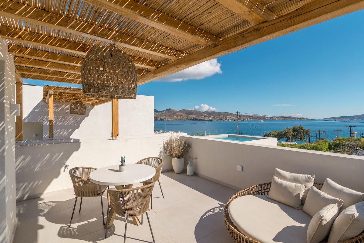 Snuggled up in serene Adamanta district, on the west side of Milos island. The suites are bathed in natural light, copiously diffused in the spacious interiors, bringing out their free-spirited decoration. Oozing an air of unpretentious luxury, combining pure cotton-white with impressive earthy details and smooth lines, all suites offer upscale amenities, comfortable furnishings, lounge areas and modern, en-suite bathrooms with bathtubs.