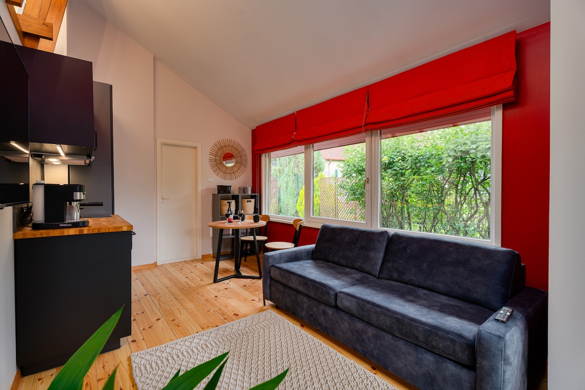 リガ市内から車でわずか30分のところにある、レクリエーションのための平穏で静かなホリデーハウス! GaujaUpeのホリデーホームは、カップルや最大4名様までのご家族にぴったりの休暇です。 一軒家はワンルームタイプで、総面積は35平方メートル、屋外テラスは12平方メートルです。 「桜の上」(合計料金には含まれていません)として、川の景色を楽しみながらサウナでウォームアップして入浴するか、ジャグジー付きのホットタブを借りることもできます。