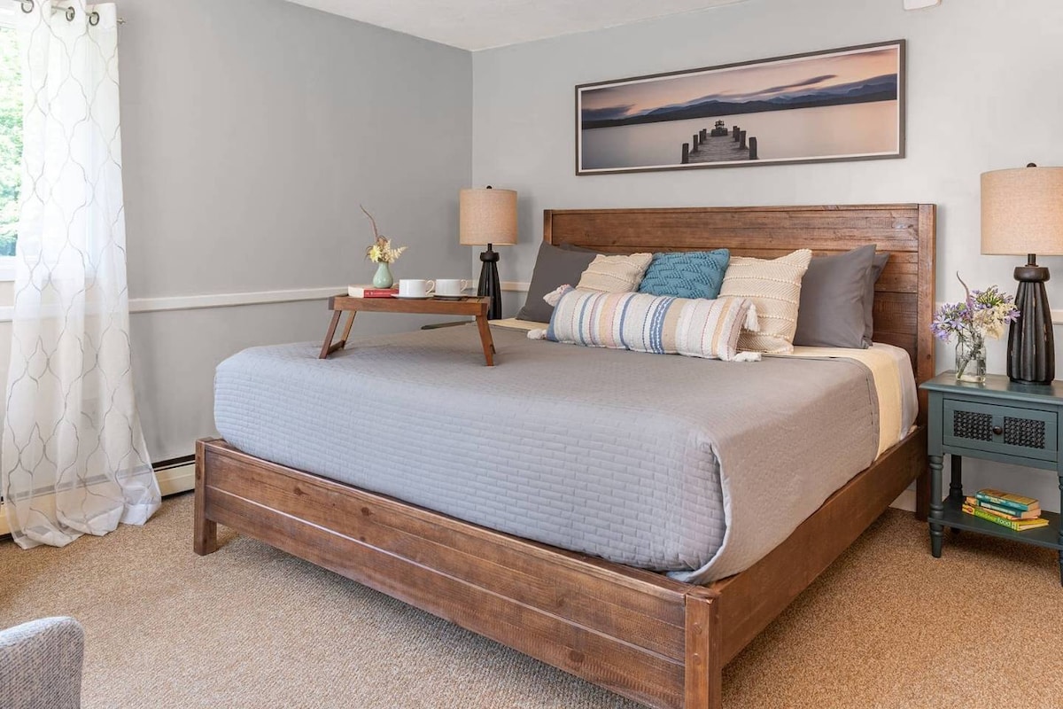 コージー・キャセドラルは、休暇のステイケーション、大学の卒業生のミドルベリーへの帰り、または初めて街を体験する方々を温かく迎えるための、素晴らしく快適なお部屋です。 大聖堂の天井には、1840年代の建物に特有のむき出しの梁があります。 部屋とバスルームの窓からは自然光が差し込み、オッター・クリークの景色が見えます。タイル張りのシャワーにはバスタブとサロン品質のヘアケア製品が備わっています。 個別の温度調節で快適さを確保します。