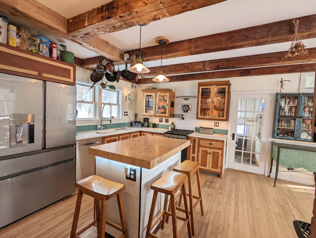 ようこそ、ここはファームハウスです。私たちののどかなファームステイは、バーモント州ロックスベリーの田舎にある1840年代の美しいファームハウス内にある、プライベートで広々としたモダンなスタジオを提供しています。専用のプライベートサンルームアトリウムの屋内ホットタブが含まれています。20エーカーの敷地内には、遊泳用の池、森林の小道、開けた牧草地、小さな農場があります。ドッグ川の源流を探索しましょう。バーモント州で最高のスキー、ハイキング、サイクリング、ビール、食事を楽しんでください。屋外サウナは追加料金でご利用いただけます。