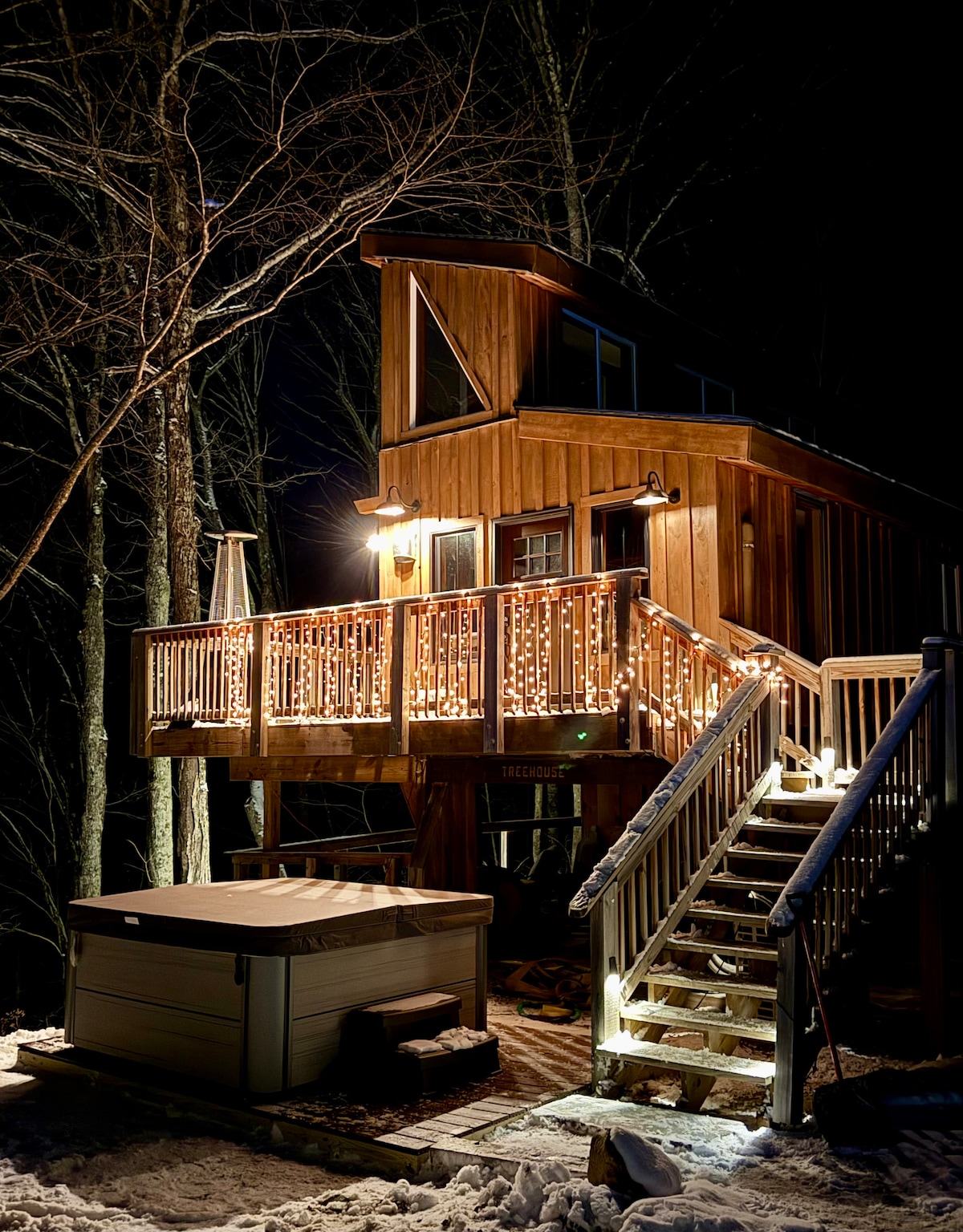 This unique treehouse was built by me with my own two hands during the pandemic. The architect styled design is one of a kind with huge windows and custom bathroom/kitchen. My grandparents once owned and operated a dairy farm on the land. I want to share the treehouse and surrounding area with my guests. Located on the historic Rt 100 ski highway with easy access to Killington/Pico (20 min), Sugarbush (40 min) & Okemo (45 min). Private salt water hot tub directly under treehouse, new in 2026!