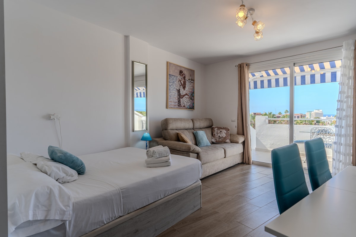 島で数日を楽しむのに最適な魅力的な宿泊施設です。アデヘの最も人気のある、静かなエリアの1つにあります。 リビング、寝室、バスルーム、ドレッシングルームの4つのエリアに分かれた60平方メートルの広々としたワンルームです。 宿泊施設の中庭にアクセスするための専用駐車場があります。 また、Wi-Fi(光ファイバー)、ケーブルテレビなどを備えています。 ベッドは160x200、ソファベッドは140x190です。 車で: - 空港まで15分 - ビーチまで4分 スーパーマーケット、カフェまで徒歩1分