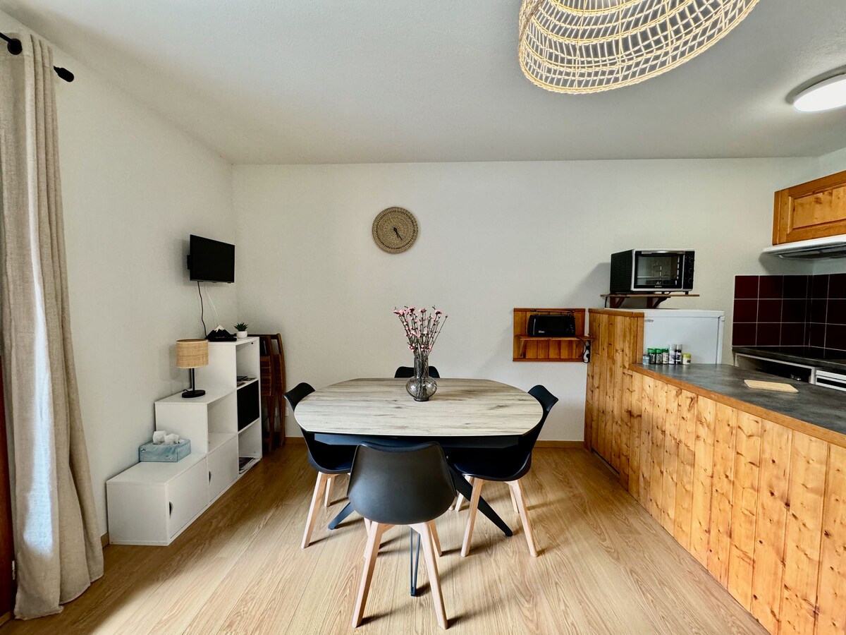 40m2の快適なアパート、1階にあり、南向きのテラス付き。ルダンヴィエルとペラギュードを結ぶスキーバルまで400m。商店(スーパーマーケット、薬局、書店、レストラン)に近い。バルネア温泉センターと家族で散歩するのに最適な湖(ポンプトラック、子供用ゲーム、屋外プール、ツリークライミング)まで5分。 宿泊施設の前には駐車スペースがあります。