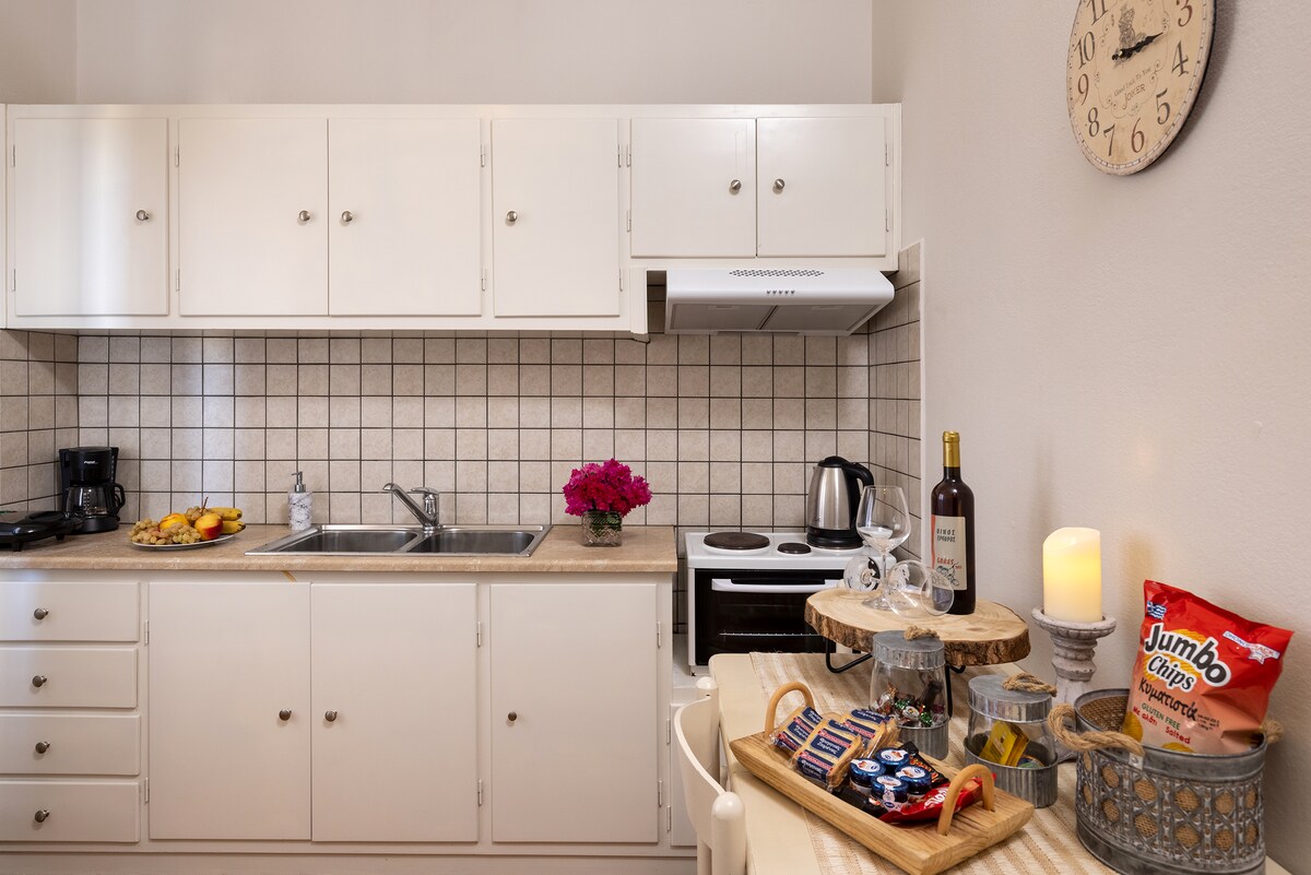 Aelion SunはAelion Villasの1階にあるアパートです。 エーゲ海の景色を一望できる90平方メートルの設備の整ったアパートで、最大6名様までご宿泊いただけます。 クインサイズベッド1台の寝室1室、シングルベッド2台の寝室1室、シャワー付きの大きなバスルーム、6名様用のジャグジー、設備の整ったキッチンがあります。 快適に景色を楽しむためのサンベッド、洗濯機、食器洗い機、Wi-Fi、認定飲料水システム、エアコン、駐車場もあります。