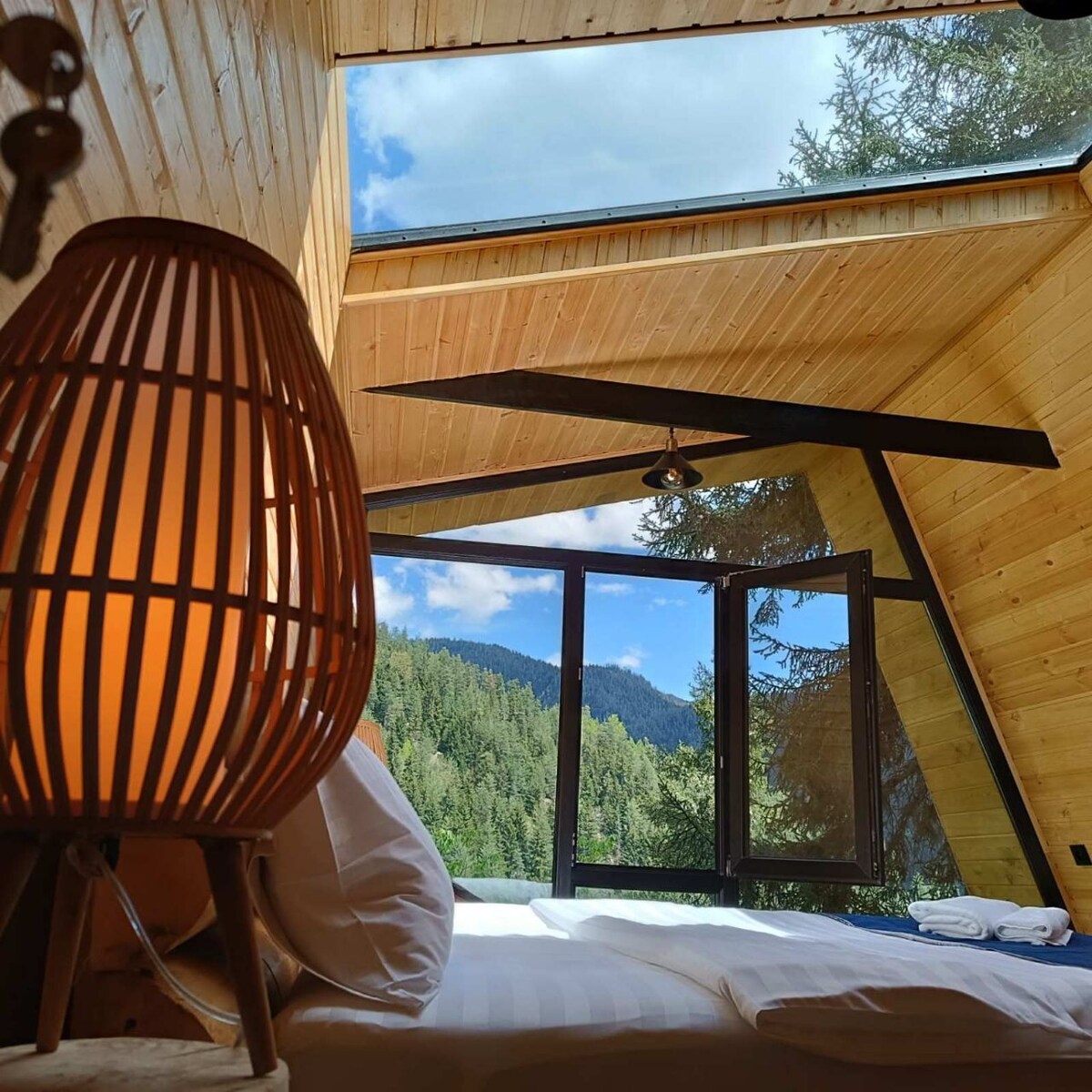 A unique location in Abastumani: experience absolute forest silence just 3 minutes from the center. Our new cottage is nestled on a mountainside, right at the edge of the pine forest. Its elevated position above the village guarantees pristine air and no immediate neighbors. It is the perfect retreat for those who cherish privacy and peace but still want easy access to local amenities.