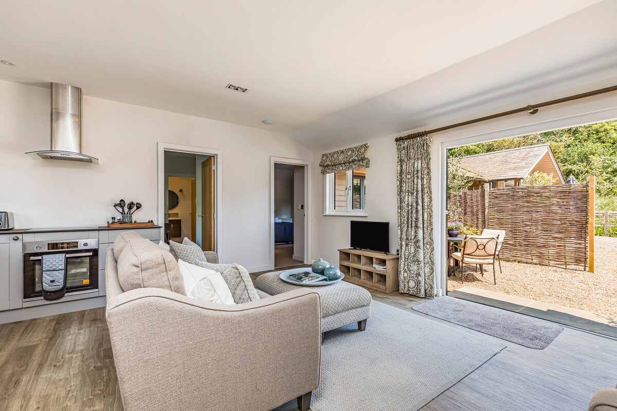 *Message us for longer stay winter discounts* - Beautifully furnished barn in rural location - Close to Chichester, The South Downs and Goodwood - Free parking on premisies with access to EV charger Spend some time in this stunning barn furnished with the highest quality furniture and fabrics. This beautiful lodge offers luxury accommodation over two floors for four people looking for a peaceful retreat with restaurants, vineyards and country side on your doorstep.
