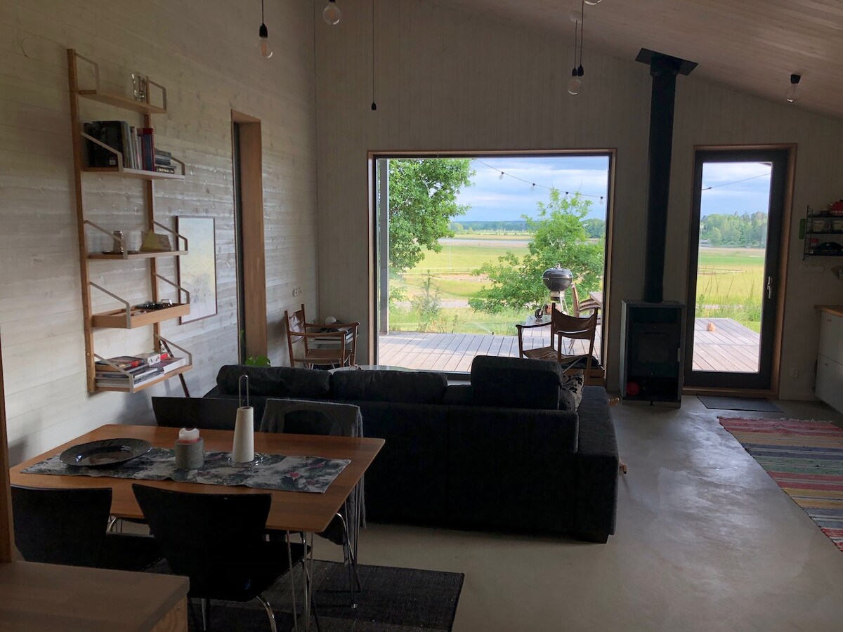 エスキルストゥーナからわずか11キロ、森の田園地帯に位置し、スンドビーホルム競馬場からは徒歩わずかの場所にある、エアコン付きの比較的新築(2021年)の「ボルンダーレ」。 コテージには、ロフトベッド、床暖房、シャワー、洗濯機を備えた大きなバスルームがあります。食器洗い機を含む設備の整ったキッチン。 リビングルームには、ソファベッド、クロームキャスト、Netflix、Disney Plus、PS3、Bluetoothスピーカーを備えた43インチHDテレビ、DVD、インターネットWiFiが備わっています。 大きなウッドデッキがあります。