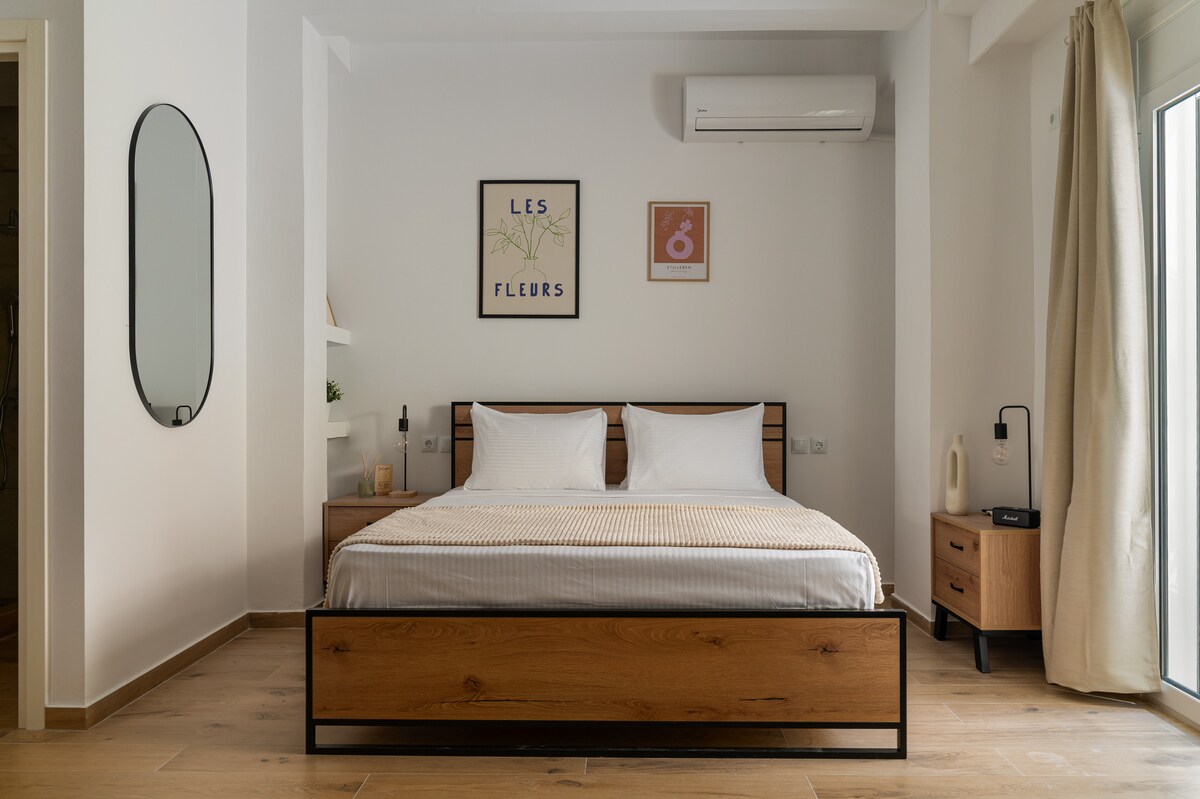 アテネでの滞在にぴったりの拠点。レトロな魅力とモダンな快適さが融合した広々としたアパートです。アパートは、ビクトリア地下鉄から徒歩わずかの静かな歩行者専用の通りにあります。高速Wi-Fi、人間工学に基づいた作業スペース、設備の整ったキッチンをご利用いただけます。ロックボックスを使ったセルフチェックインです。