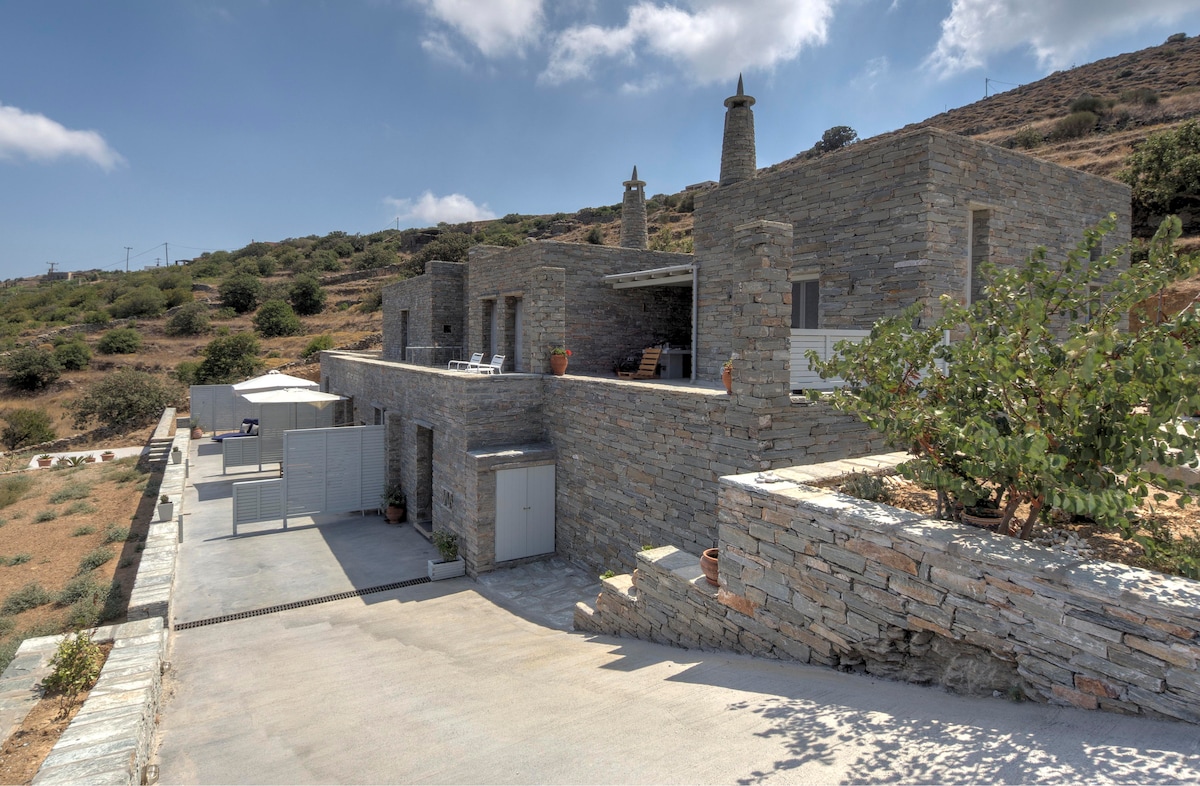 私たちの家はフォティマリにあり、港から15分(5.5 km –最後の1.5 kmは滑らかな未舗装道路)、13000 m 2の敷地内にあり、オークとオリーブの木々が生い茂る緑の丘、美しい古代の道、そしてクオラ村(イウリス)の素晴らしい景色を見渡すことができます。 150年以上前に建てられたユニークなキクラデス風の石造りの家は、完全に改装されています。以前はワインプレスとして使用されていましたが、今は上品に装飾されており、忘れ去られた昔の本物の静かな雰囲気を味わえます。 このユニークな小さな家は、たくさんの砂浜とケア島本土を探索し、伝統的な生活様式を楽しむのに最適な場所です。 キングサイズのダブルベッド、ソファと暖炉のあるリビングルーム、バスルーム、設備の整った小さなキッチン、専用庭園が含まれています。 私たちの家や島についてご不明な点がございましたら、お気軽にお問い合わせください。 最大6名様の場合は、わずか50メートル先にある2つ目のリスティングと組み合わせることができます。2つ目の家については、私のプロフィール内をご覧ください!