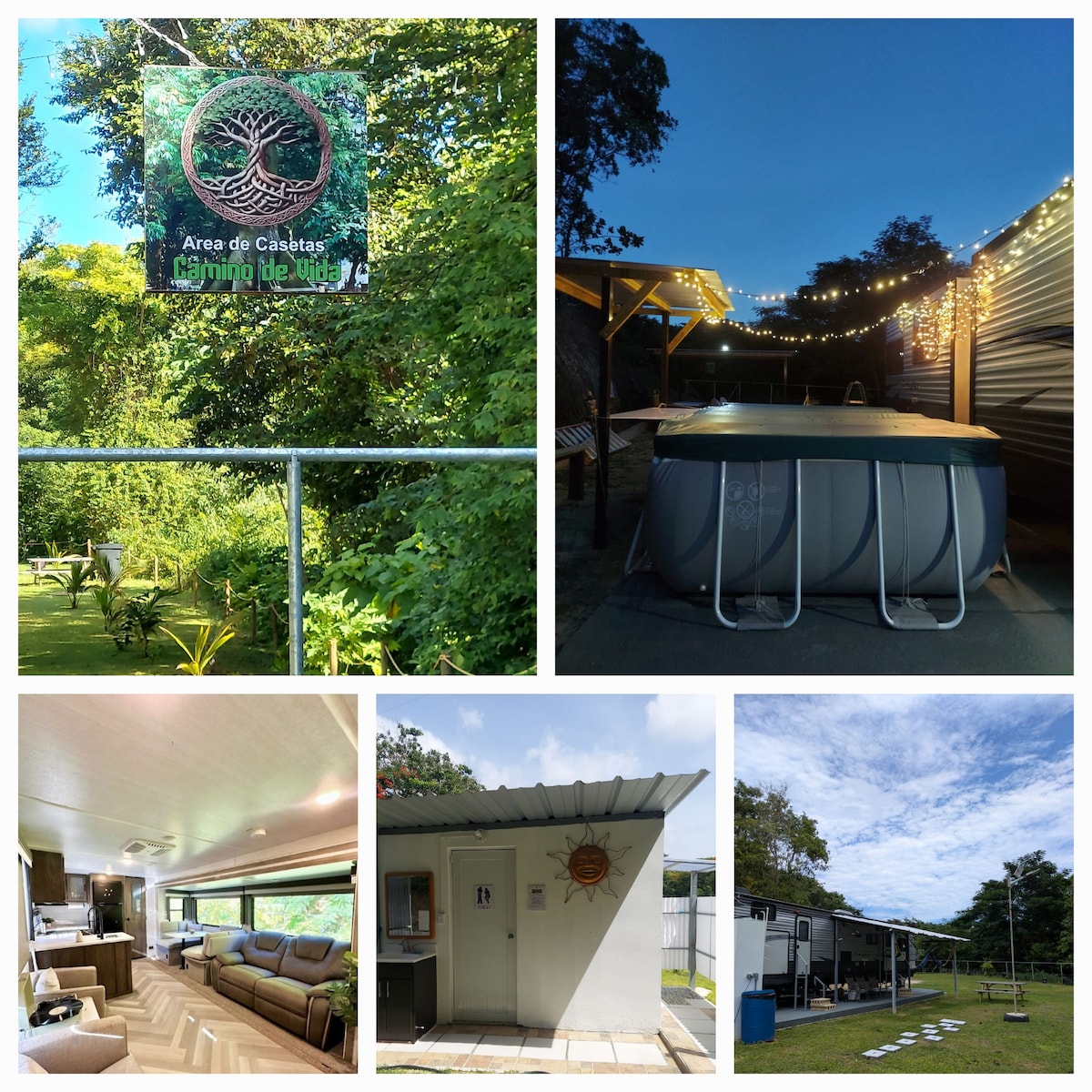 活気あるアグアディージャの町のハイウェイ110号線から離れた静かな路地にある魅力的なRV「El Camper」で完璧な休暇をお過ごしください。 リラックスと思い出に残る体験のために設計されたこの居心地の良い天国は、くつろぎ、プエルトリコの魅力を探索するために必要なすべてを提供します。 エル・ンペルは快適さと自然を組み合わせた宿泊先で、安全なフェンスに囲まれた温かく魅力的な雰囲気が特徴で、自然の要素で丁寧に装飾されています。 リラクゼーションと楽しみのために設計されたさまざまなアメニティをお楽しみください。