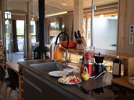 Strength and endurance training while breathing fresh country air. Afterwards, take a shower in the spacious, floor-to-ceiling shower or simply escape the hustle and bustle of everyday life in the garden. In the evening relax with entertainment on the HD projector.