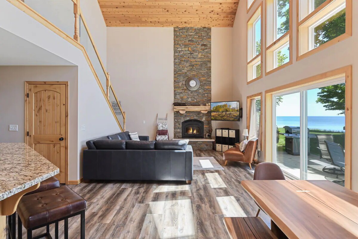 Our cabin has been fully updated to meet the needs of our family and guests. Main floor plan is an open concept with beautiful lake views and awesome screened in porch with fire table. Every room has great views of the lake and a wrap around with plenty of space to enjoy. Our shoreline is as nice as come on the lake- great swimming and gradual slope with no weeds or rocks of any kind. Great place for a winter get away! Snowmobile right from your front yard to miles of trails near by.