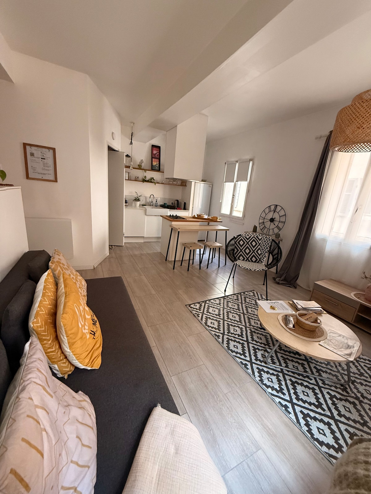 歴史的な街の中心部にある改装済みのアパート、エアコンとWi-Fi、コンロと冷蔵庫の付いたキッチン、ソファーベッドとテレビの付いたリビング、ダブルベッドの付いた寝室、イタリア式シャワーと洗濯機の付いたバスルーム ミラボー通り、地元の農産物や花市場からすぐです 有料駐車場は徒歩10分、ミニェまたはベルガルド 赤ちゃんやペットは受け入れていません 私たちの美しいエクス・アン・プロヴァンスの街を発見するのに理想的です!