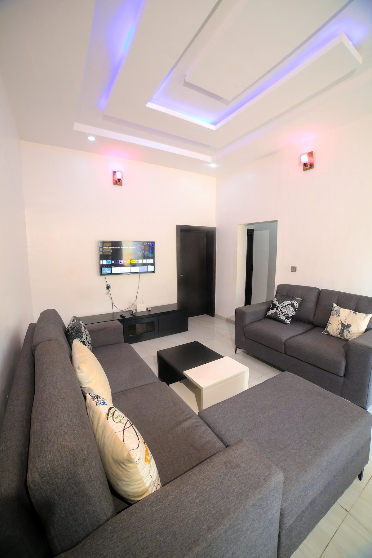 ファミリー向けの広々とした4ベッドルームの現代的な家で、素敵な雰囲気があります。サービスが充実していて安全なエステートにあり、近くにはスーパーマーケット、バー、レストラン、映画館などのアトラクションがあります。 家具付きで、設備が整っています。 ** 24時間電源(バックアップ用に10kvaインバーター付き) **24時間365日対応のセキュリティ **美しく快適なリビングルームとダイニングルーム。 **2階にバルコニー2つ **設備の整ったキッチン ** NetflixとDSTV(ケーブルテレビ) ** ハウスクリーニング **高速インターネット(光ファイバーインターネット)