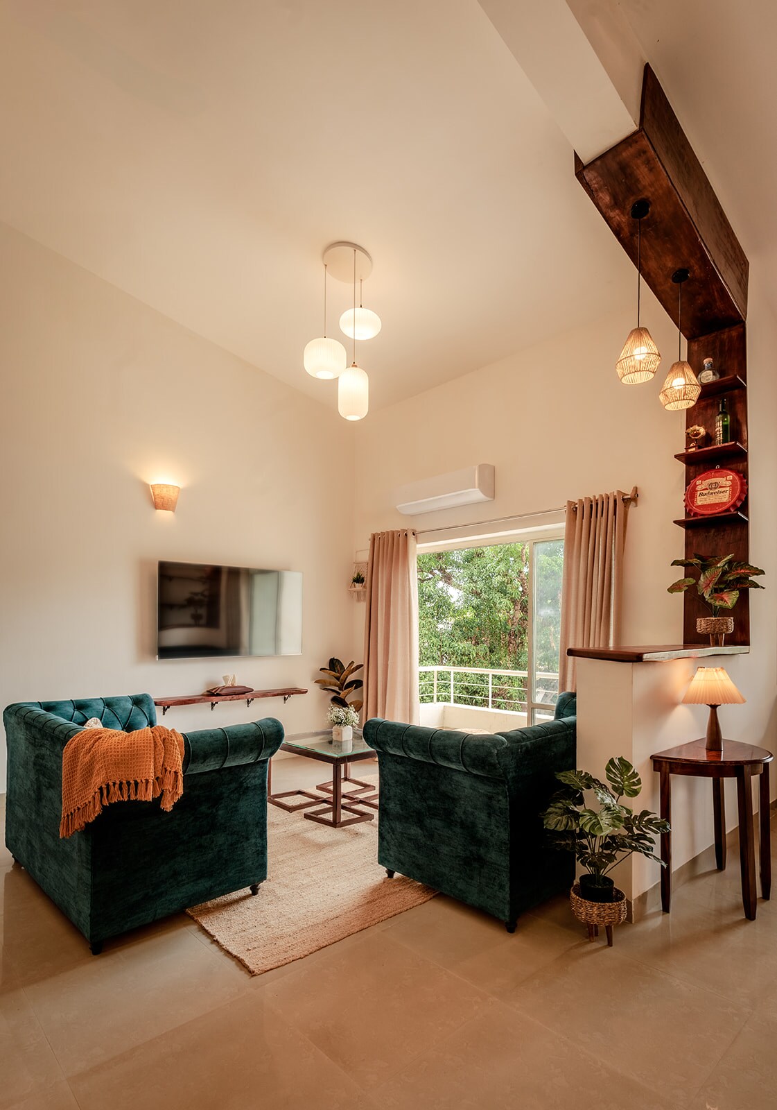 カムリムの緑に囲まれたジュリエットバルコニーは、静かで贅沢な休暇を提供します。緑豊かな庭園、きらめくプライベートプール、そよ風の吹くベランダを備えたこのヴィラは、アジュナ、ヴァゲーター、モルジムの近くに滞在しながら静寂を求める旅行者に最適です。 広々とした寝室4部屋|自然にインスパイアされたインテリア 庭側のラウンジャー付きプライベートプール 朝のコーヒーのためのベランダと屋外のシットアウト 温かみのあるアースカラーの快適なリビングスペース 設備の整ったキッチン&ヴィラ内でのお食事オプション