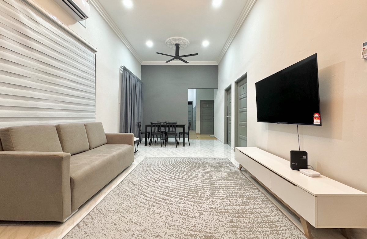 クアラトレンガヌのRS Stayへようこそ! 広々としたベッドルーム3室、Netflix付きの55インチAndroidテレビ、Wi-Fi、エアコン完備の快適なお家です。スルタン・マフムード国際空港から車でわずか5分の場所にあり、クアラ・テレンガヌのダウンタウンにある便利な立地です。クアラテレンガヌ川上遊橋、パサールペヤン市場、パンタイテルクケタパンビーチなどの地元の観光スポットを15 ~20分以内に探索できます。短期滞在や家族旅行に最適です。今すぐ予約して快適さと冒険をお楽しみください!