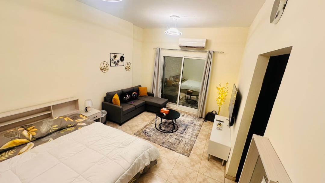 タイトル:最高のロケーションにあるスタイリッシュで居心地の良いワンルーム 説明文: 快適なベッド、高速Wi-Fi、設備の整ったキッチンを備えたモダンなワンルームです。シャルジャショッピングモール、ザヒアアップタウンウォークの近くにあります。おひとり様、カップル、医療旅行、出張滞在に最適です!