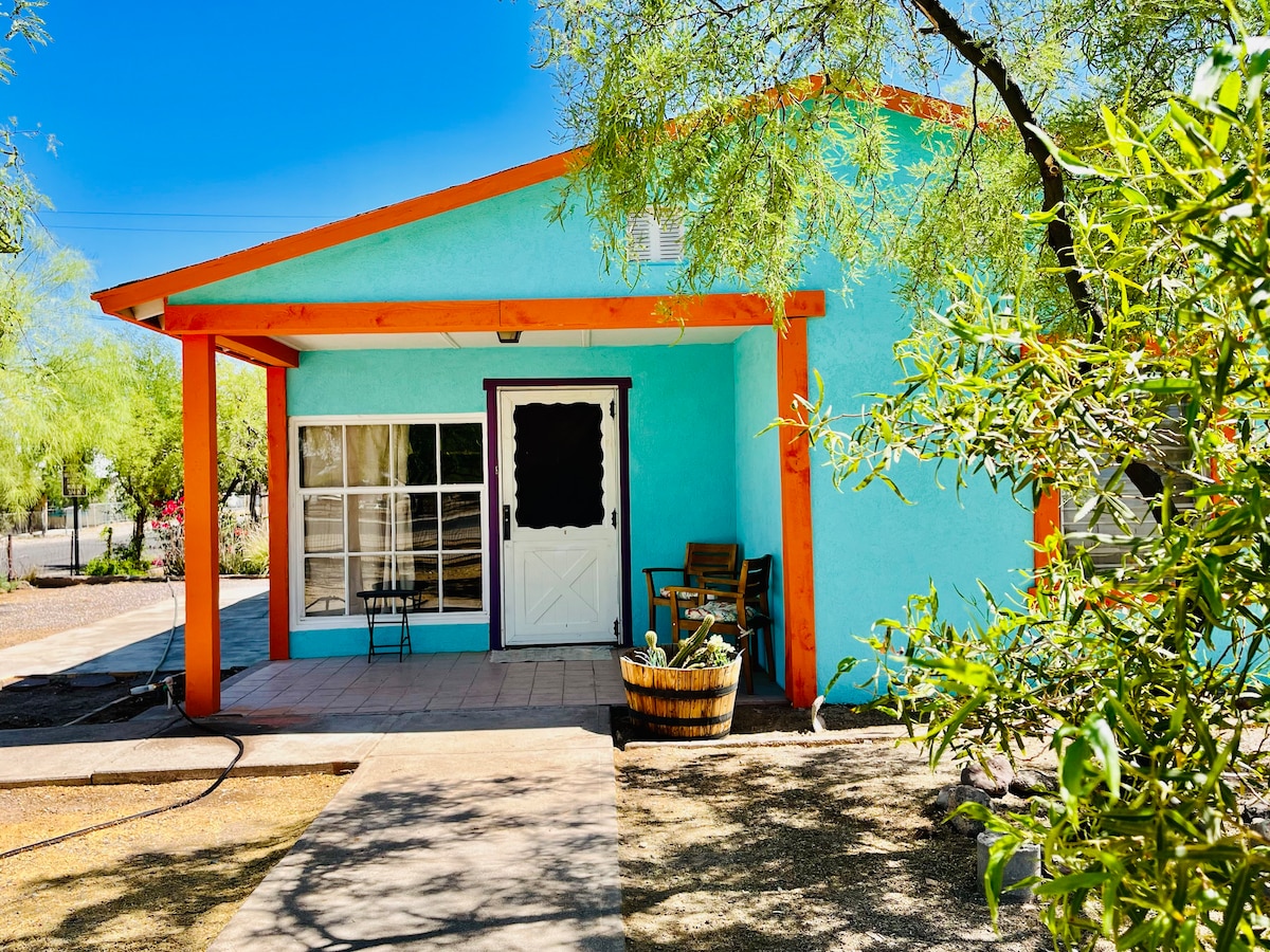 通りの端にあるシンプルで静かな小さな家で、歴史的な町の広場まで徒歩圏内で、美しいソノラ砂漠から数分です。 家は設備が整っており、ゲストを迎える準備ができています。必要なのは、砂漠への平和な旅行のための食料品だけです。 こちらはメインハウスに隣接するゲストハウスで、犬のための広いスペースもある共有庭です。 ここは犬同伴OKの宿泊施設で、静かな犬を飼っています。庭を共有します。屋外の座席、照明、焚き火台をご利用いただけます。