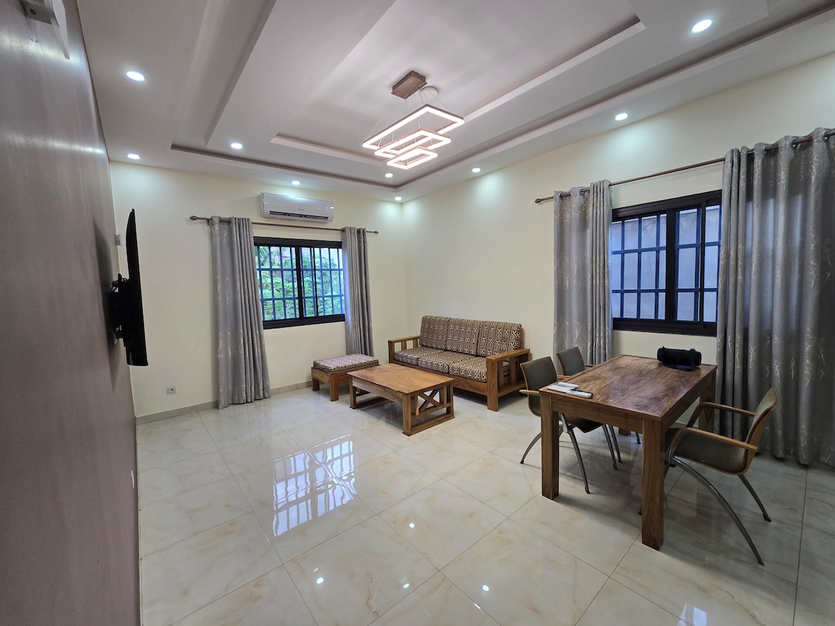 Welcome to our 2 bedroom apartment home in lome .Enjoy comfort and style in this full furnished apartment Located in Amadahome, 25min to downtown lome, 27min to the airport , quiet neighborhood . Outdoor Surveillance cameras and a night shift security guard .Rentals car service is available To ensure comfort and respect for the space, all guests are allowed up to 2 visitors at a time. Thank you for your understanding. {Free wifi,water, cooking gas } Guest is responsible for the electricity