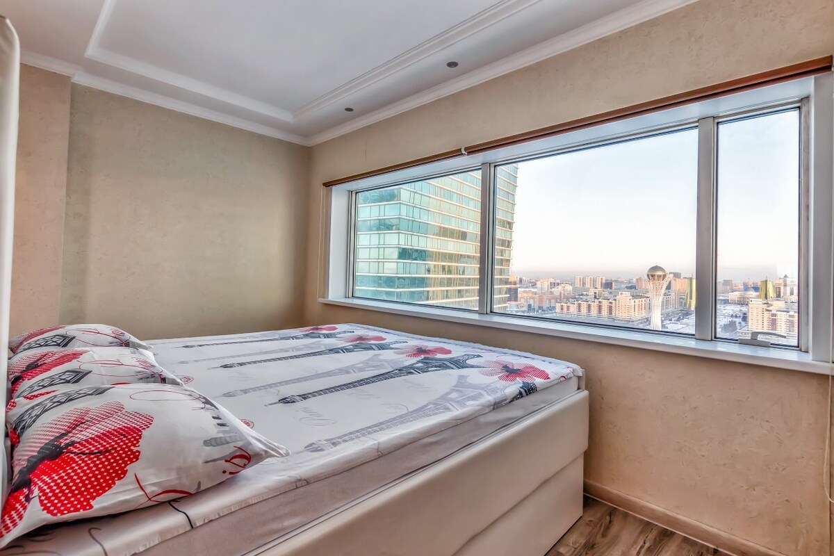 首都の中心部に位置する「北の輝き」住宅団地の22階にある明るく手入れの行き届いたアパートメント。アスタナの中心部を一望できる絶景のロケーションです。快適な滞在のためにすべてが装備されています。インターネット、2台のスマートテレビ、コーヒーマシン、食器洗い機、すべての家電製品。 「オーロラ」住宅団地は、アスタナの中心部に位置し、バイテレク記念碑から200メートル、首都の多くの主要な観光地、カフェ、レストラン、ショッピングセンターから徒歩圏内にあります。