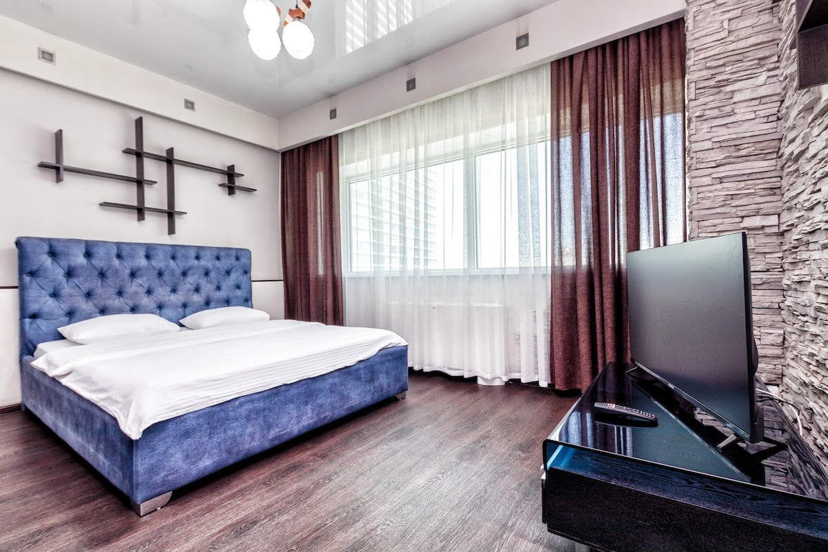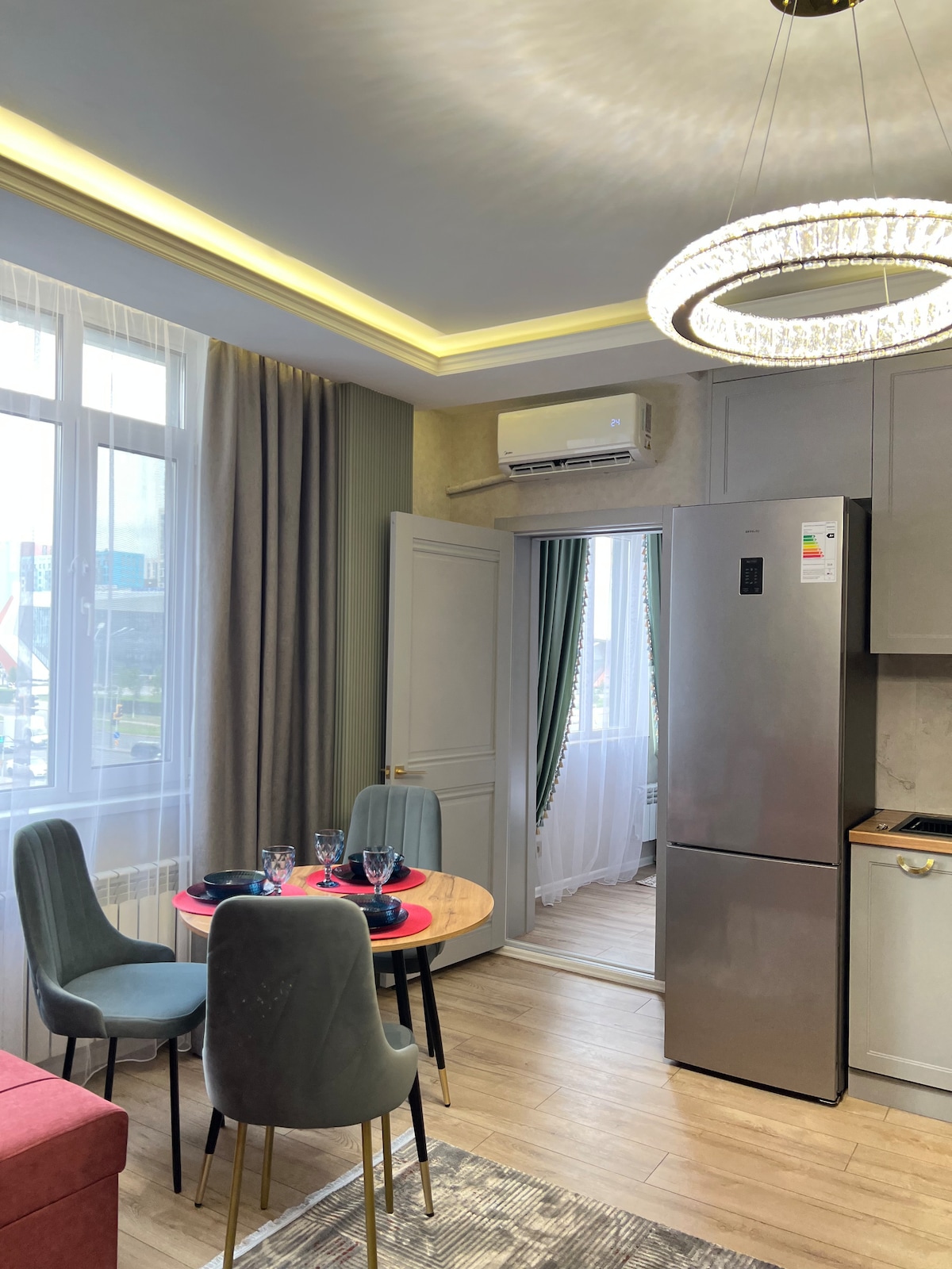 アスタナのモダンで居心地の良いアパートです。 ご自宅のように快適にお過ごしいただけるよう、ご招待いたします。 すべてのアパートで同じスタイルを維持するようにしており、ゲストにとって一定の快適さを生み出しています。 アパートには、調理に必要なものがすべて揃っており、高速インターネット(Wi-Fi)、スマートテレビが備わっています。