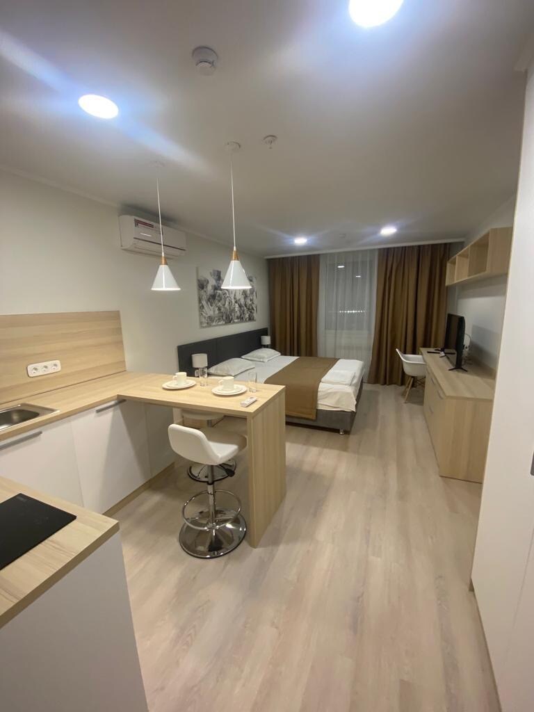 Наши апартаменты созданы для комфортного проживания гостей, которые ценят качество, простор и стиль. Что вас ждёт: • Светлые и современные номера с продуманным дизайном • Полностью оборудованная мини-кухня • Удобная кровать и качественное бельё гостиничного стандарта • Бесплатный Wi-Fi на высокой скорости • Тишина и абсолютный комфорт — подойдёт как для отдыха, так и для работы • Уборка для вашего удобства • Круглосуточная стойка ресепшн и безопасность • Локация