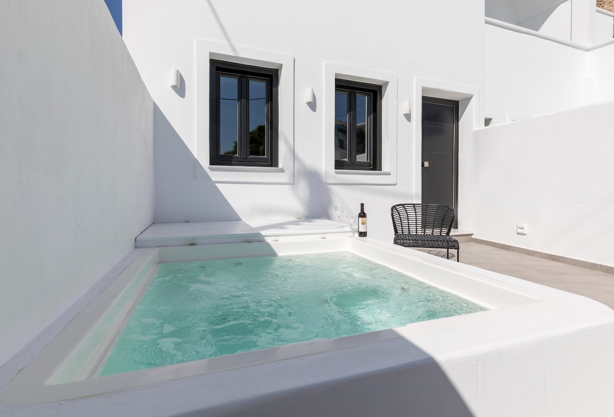 新築のスイートは、モダンで豪華な環境を提供し、サントリーニ島のカルデラ(崖、火山、イア、フィラなど)全体の最高の景色を楽しめます。有名なギリシャのおもてなしのおかげで、ゲストはおもてなしを受け、我が家のように感じることができます。 この世にもない旅の体験をお楽しみいただけます。