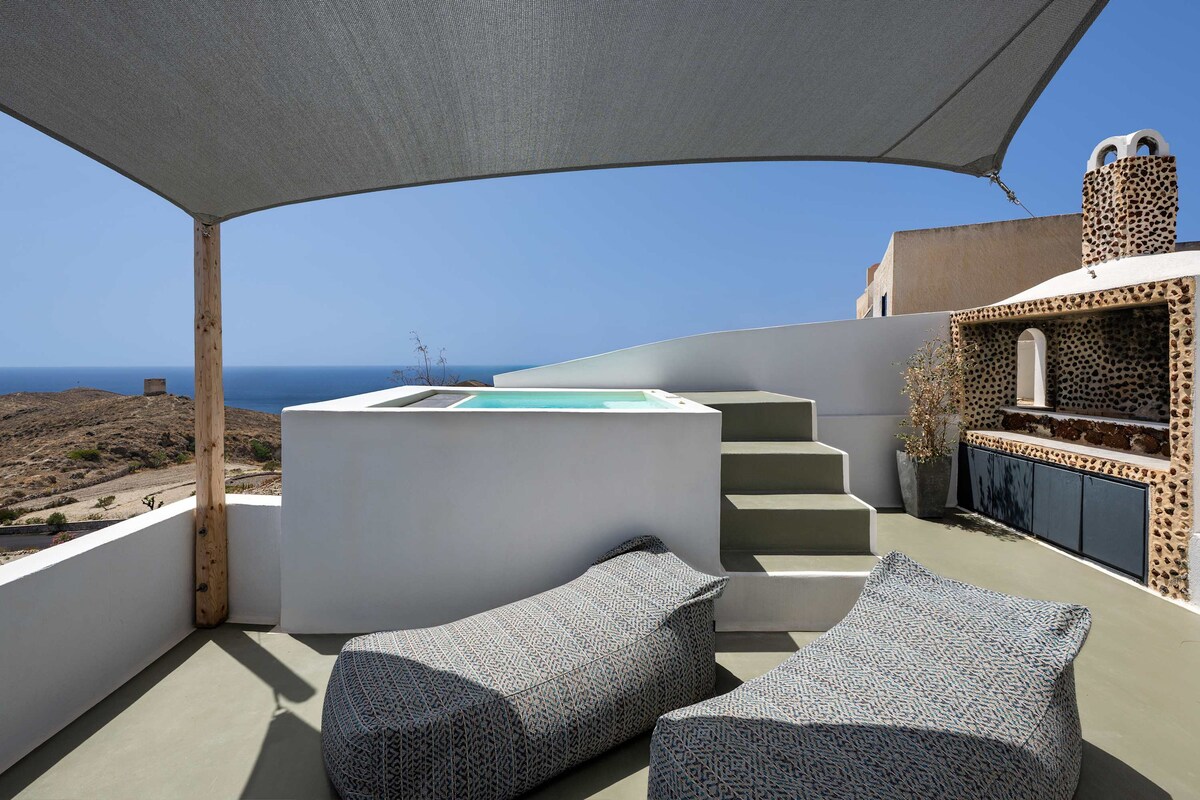 アネモススイートは、カルデラと火山諸島を見下ろすアクロティリにあります。 ジェットシステムと専用パティオを備えた、専用のインフィニティ温水洞窟スタイルのプランジプールを備えたスイートです。 キングサイズベッドがあり、2名宿泊可能です。 毎日の朝食が含まれており、お部屋にてお召し上がりいただけます。 清掃サービスが含まれています。 ご到着の詳細を事前にお知らせください。タクシー/送迎を手配いたします。