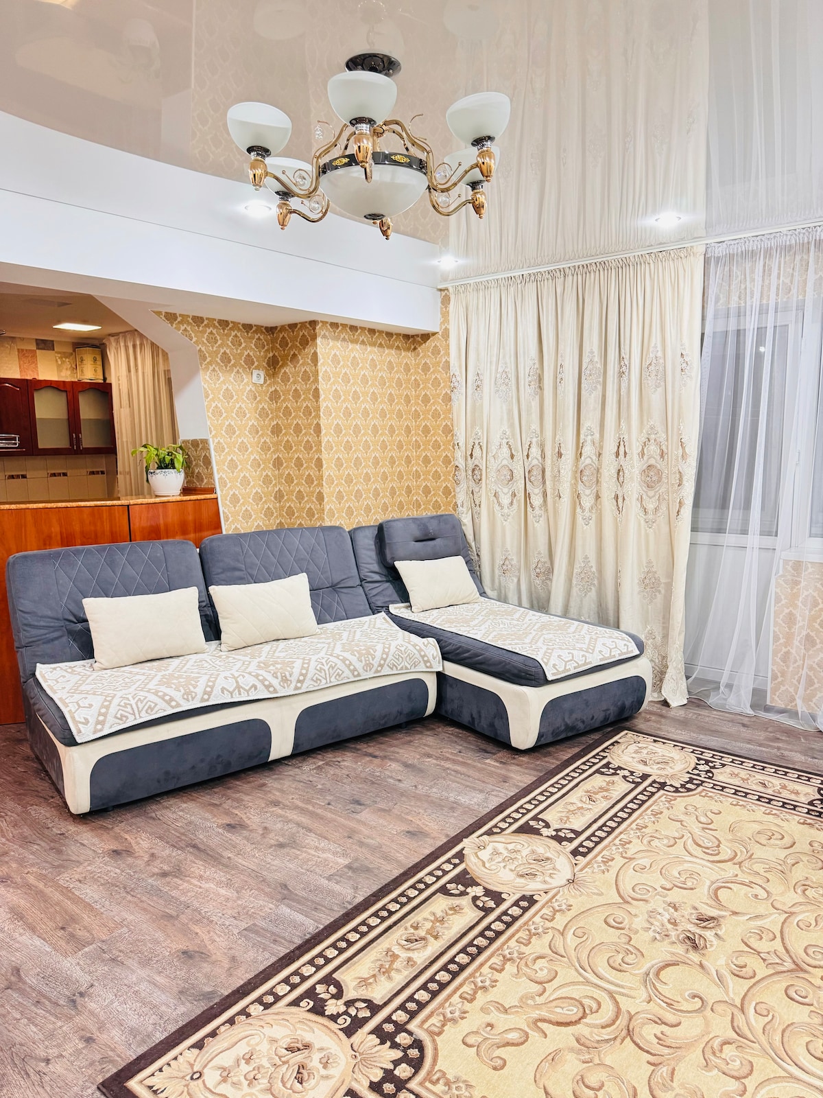 ✨ Новая 3-комнатная Сдаётся уютная и полностью обновлённая квартира в самом центре города. Всё новое — только после ремонта! 🛏️ Спальные места: — Двуспальная кровать — Полуторка — Большой диван — Маленький диван 🍽️ Удобства: — Полностью оборудованная кухня (вся посуда, техника) — Смарт-ТВ — Быстрый Wi-Fi — Чистое постельное бельё, полотенца — Просторная ванная после ремонта 📍 Отличное расположение: Рядом кафе,магазин ,рестораны, школа, налоговый,парк,супермаркет всё в шаговой доступности