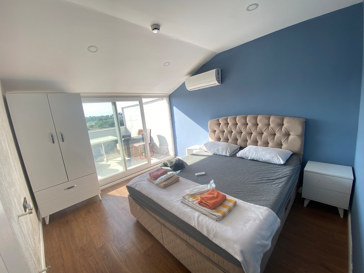 中心部に位置するこちらの宿泊先に滞在すれば、家族で行きたい場所がすべて近くにあります。とても広々として快適なロフトで、断熱性に優れています。徒歩3分以内に3つのビーチがあります。インジャルトビーチ、エルダル・イノニュ・パーク・ビーチ、モバイル・パブリック・ビーチです。敷地内には屋上にプライベートビーチがあります。このビーチは無料でご利用いただけます。宿泊先のあるエリアには、カフェ、レストラン、ショッピングセンター3軒、サイクリング、ジョギングエリアがあり、2~3 km圏内に4つの都市ホテルがあります。