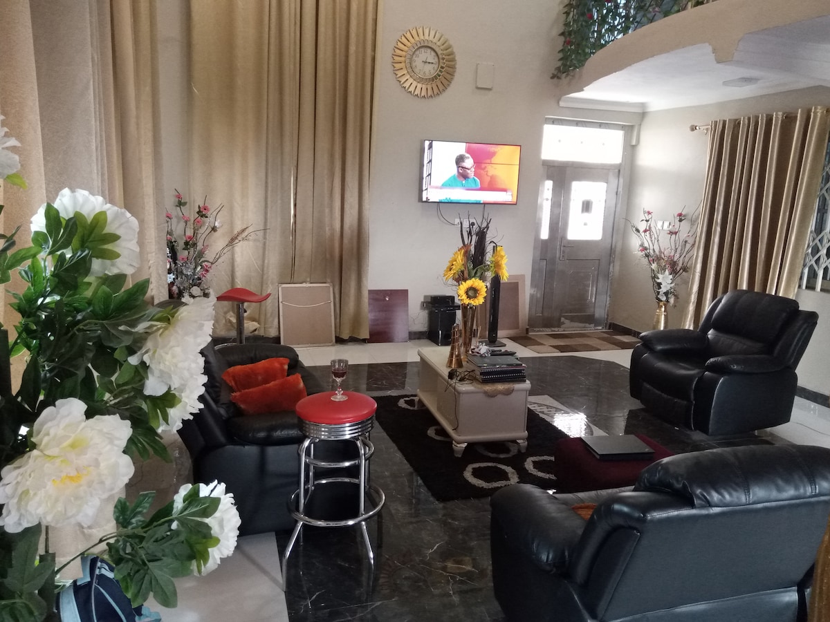 私たちの家では、あらゆる贅沢なおもてなしを受けることができます。 ● 寝室には専用バスルームがあります。 ●広々としたオープンリビング&●ダイニング、洗濯機 設備・器具の●そろったキッチン ●すべての寝室と居間にエアコン完備! 全室に●テレビ - ● フリーWi-Fi 安全● な電気フェンス ● 24時間対応の警備 予期せぬ事態を回避するための●予備発電機! ●ガーナのあらゆる場所を探索するのをお手伝いするために、車と運転手が(リクエストに応じて)待機しています。 ● 受賞歴を誇るシェフが、コンチネンタル料理でも地元料理でも、お客様のご注文を承ります!!