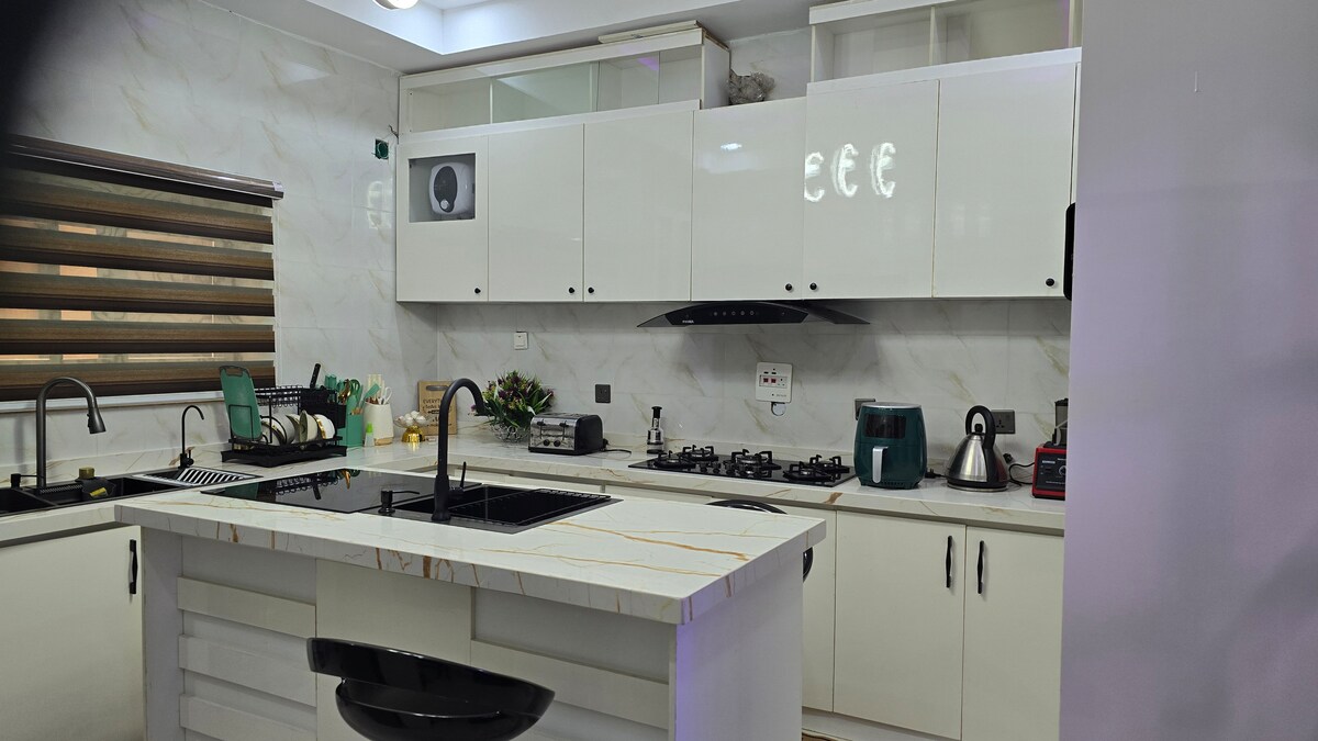 こちらのおしゃれな宿泊先は、団体旅行にぴったりです。アクレ市のアラグバカ地区のゲート付きの静かな郊外にあるユニークな宿泊先です。この4ベッドルームの洋風の家には、施錠ガレージ、オープンプランのキッチン、アンビエンス照明、洗濯機、モダンな家具、スマートテレビ、内蔵電子レンジ、無線インターネット、ハイブリッドソーラーパワーシステムと敷地内の30 KVA発電機による24時間電力供給が備わっています。ゲストが使用する場合、発電機に燃料を供給する責任があります。