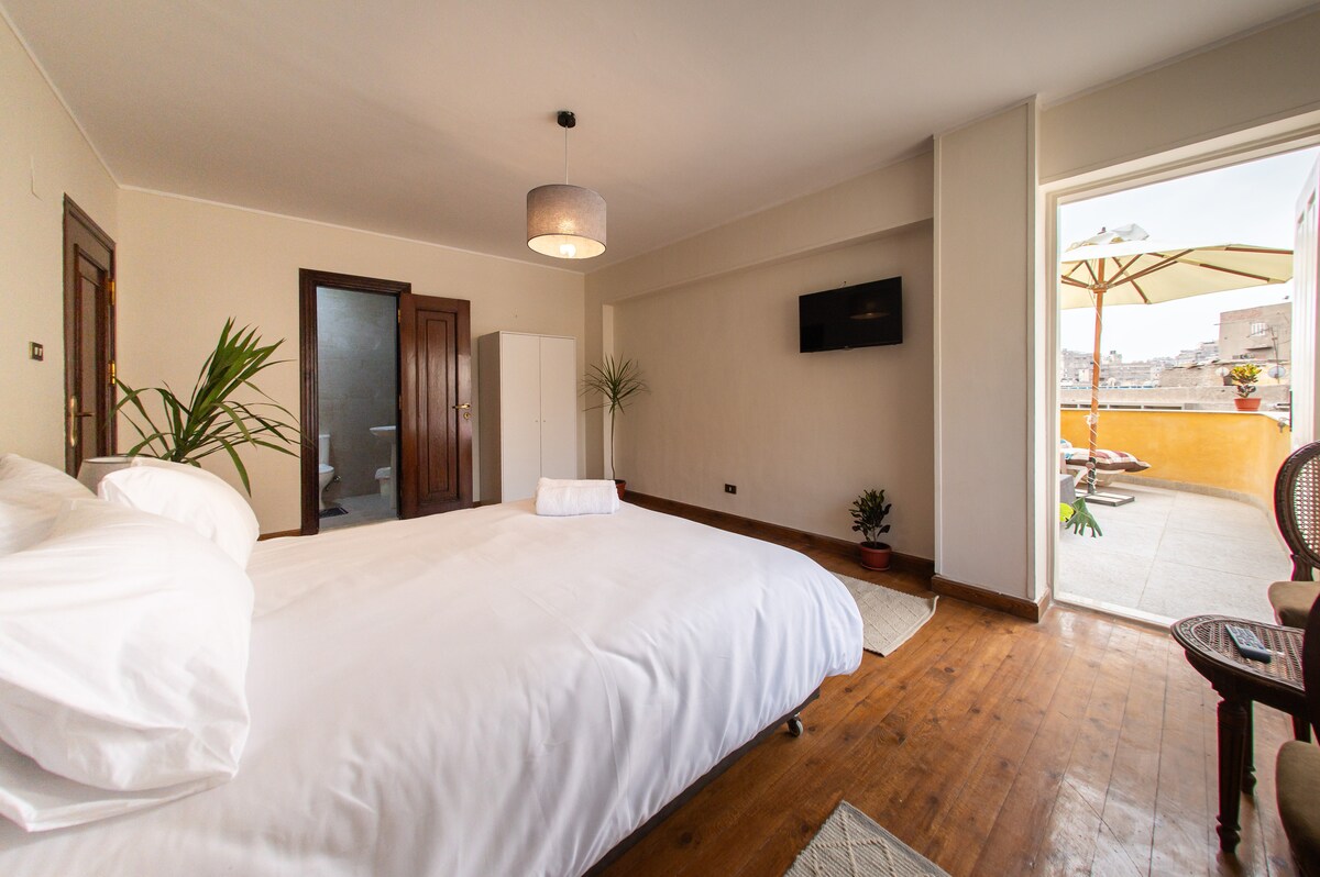 Maadi Terrace Hideawayへようこそ。 この2ベッドルームの屋上アパートは、広々とした屋外テラスを備え、リラックスできるエリアがあり、屋外でくつろぐ、景色を楽しみながら食事を楽しむのに最適です。 内部には、居心地の良いリビングエリア、設備の整ったキッチン、そして両方の寝室にはエアコンが備わっており、涼しく過ごせます。 カフェ、ショップ、地元の観光スポットの近くにある私たちのアパートは、街を探索するのに理想的な拠点です。 滞在先を予約して、マアディの魅力を体験しましょう!