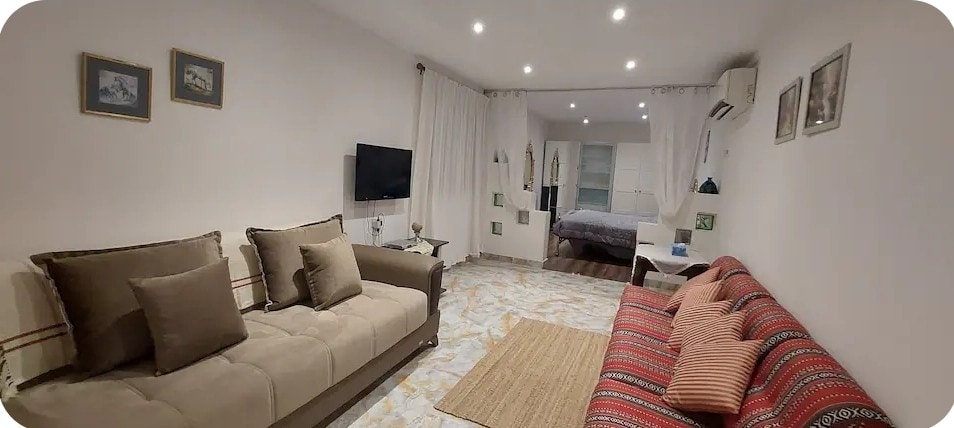 バルコニー、リビングエリア、2つのトイレを備えた新しい1ベッドルームのアパート。素敵な家具。 高速Wi-Fi、ベッドとドレッシング、ソファ、50インチスマートテレビ、衛星放送と無料Netflixアクセス、アイロン、ヘアドライヤー、掃除機、ダクトエアコン、LEDスポットライト付き天井が備わっています。 無料のプール、ジム、キッズプレイグラウンド、BBQクッキングエリアをお楽しみいただけます。ショッピングモールから車で5分、空港から15 ~ 20分。ビーチから車で20分、旧市場から車で20分、砂丘の景色の隣です。
