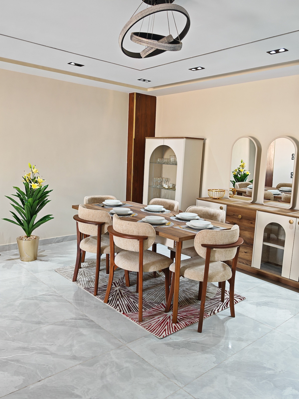 Enjoy a wonderful travel experience in this residence. Experience a blend of luxury and history in our elegant studio, located steps from the famous Pyramids of Giza, the Great Sphinx, and the Grand Egyptian Museum. Whether you're a history buff or looking for a picturesque retreat, this wonderful space offers the perfect stay for unforgettable moments. The elegant interior features luxurious furnishings, rich fabrics, and modern amenities. Relax in an atmosphere of peace and tranquility.