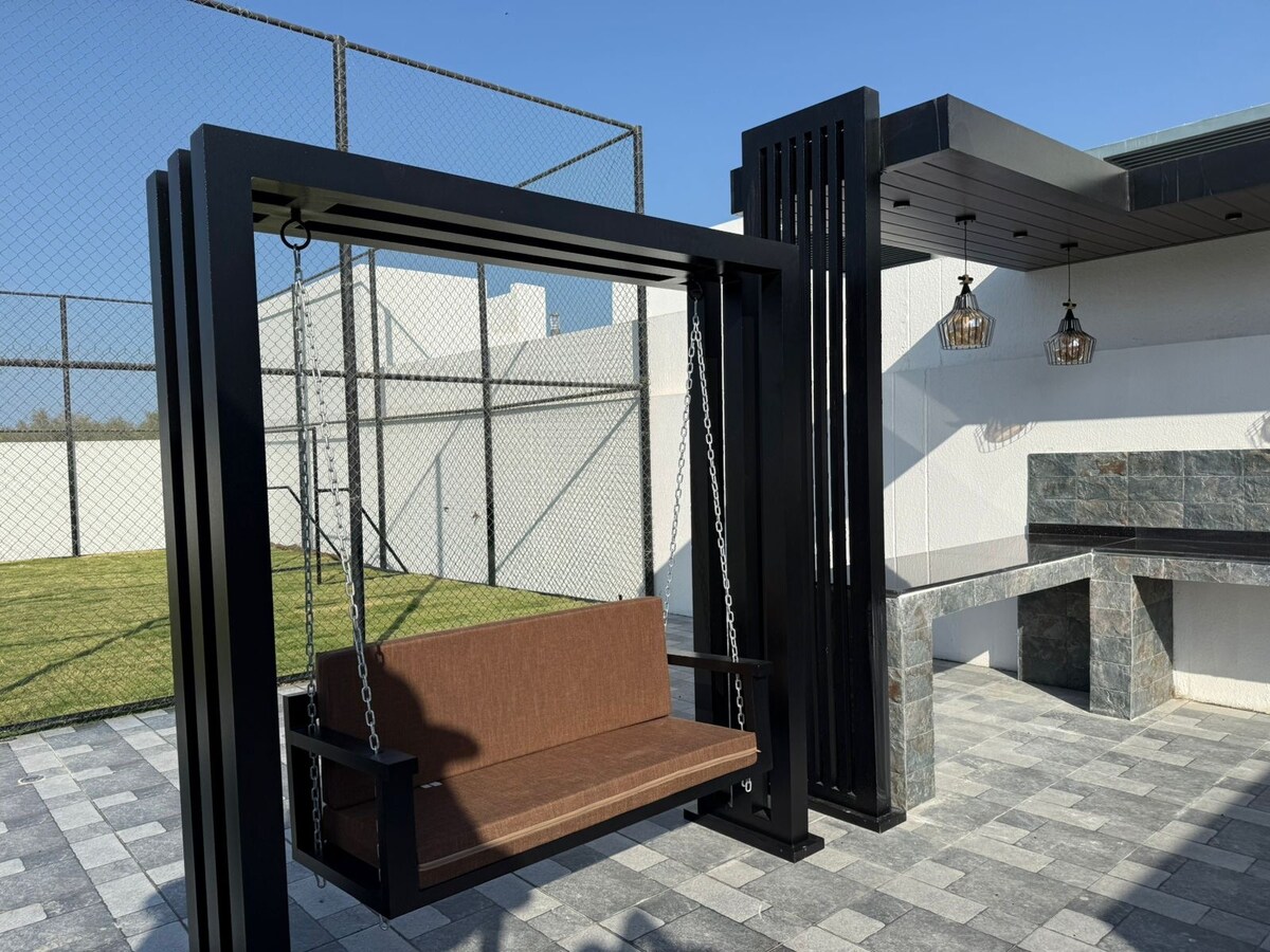 🏡 休憩所の特徴: •自然の中にある8200㎡の広いエリア。 •すべての年齢層向けのプール+子供向けのウォーターアトラクション。 •子供用の遊び場。 •専用トイレ付きの豪華な5ベッドルーム。 •巨大なエンターテイメントルーム(ビリヤード、卓球、大型スクリーン)。 •屋内外の高級アラビアセッション。 •タンドールとバーベキューコーナーを備えたオープンエアキッチン。 •素晴らしい景色:農場、アファラージュ、山、星空。 💰現在のオファー: •宿泊料金は100﷼です🌙 •半日80﷼ ⛱
