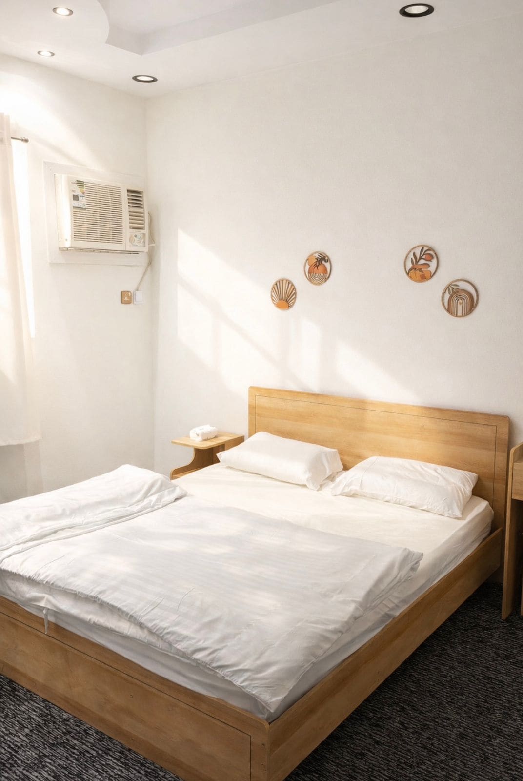 快適なクイーンベッド、スキン、ミニバーを備えた広々としたモダンな寝室。 ワードローブと収納ヘアドライヤー、エアコン、設備の整った専用バスルームがあり、静かで快適な滞在をお楽しみいただけます。 快適なクイーンサイズベッド、ソファ、ミニ冷蔵庫を備えた広々としたモダンな寝室。 ワードローブ、ドレッサー、スプリットエアコン、設備の整ったバスルームが備わっており、快適でリラックスした滞在をお楽しみいただけます。