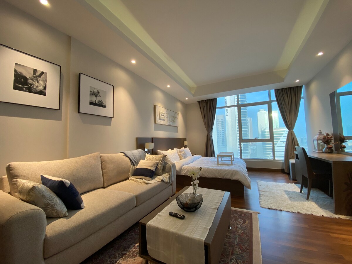 スタイリッシュな家具、街や海の眺め、専用バルコニーを備えたモダンな生活をお楽しみください。お店、さまざまなレストラン、交通機関、ナイトライフに近いフラットな立地 フラットの特徴 - すべての長期滞在用の設備(コーヒーマシン、トースター、ケトル、アイロン、ヘアドライヤー、掃除機) - すべての基本的な設備が整ったキッチン - すべてのバスルームのニーズ - スマートテレビと高速Wi-Fi すべてのアメニティ・設備をご利用いただけます 仕事用スペース - スイミングプール フィットネスセンター サウナ ・駐車場 - スクワッシュコート 24時間365日セキュリティ