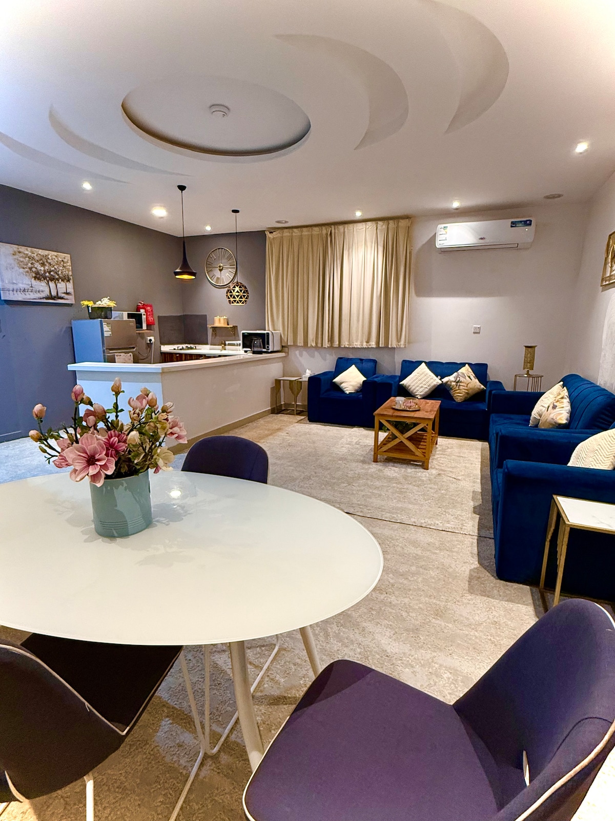 このエレガントで静かな宿泊施設で、家族や友人と一緒に楽しんでください。モダンで快適なデザインの2つの寝室、キッチン、コーヒーと冷たい飲み物のためのエリア、ロビー、2つのバスルームがあります。セルフチェックインがあり、ブライダ市の北にあり、イマーム・アル・ブハリ通りから1分、すべてのアクティビティやサービス、多くのカフェやレストランの近くにあります。